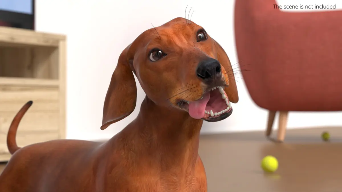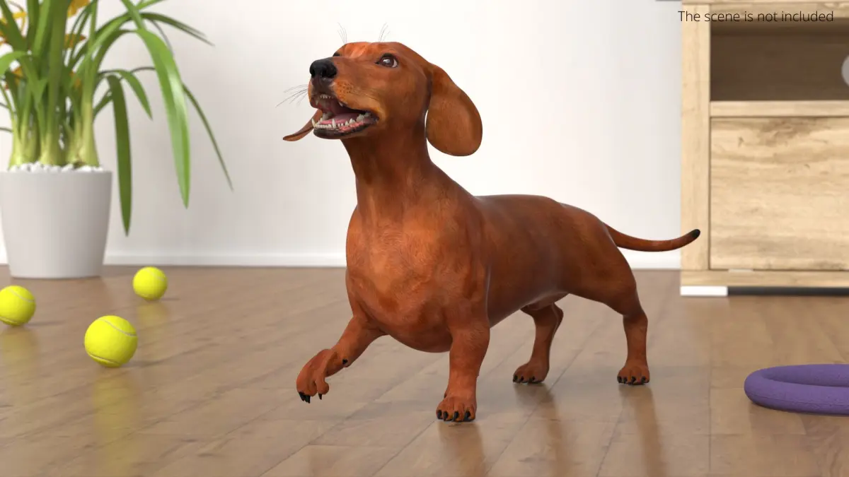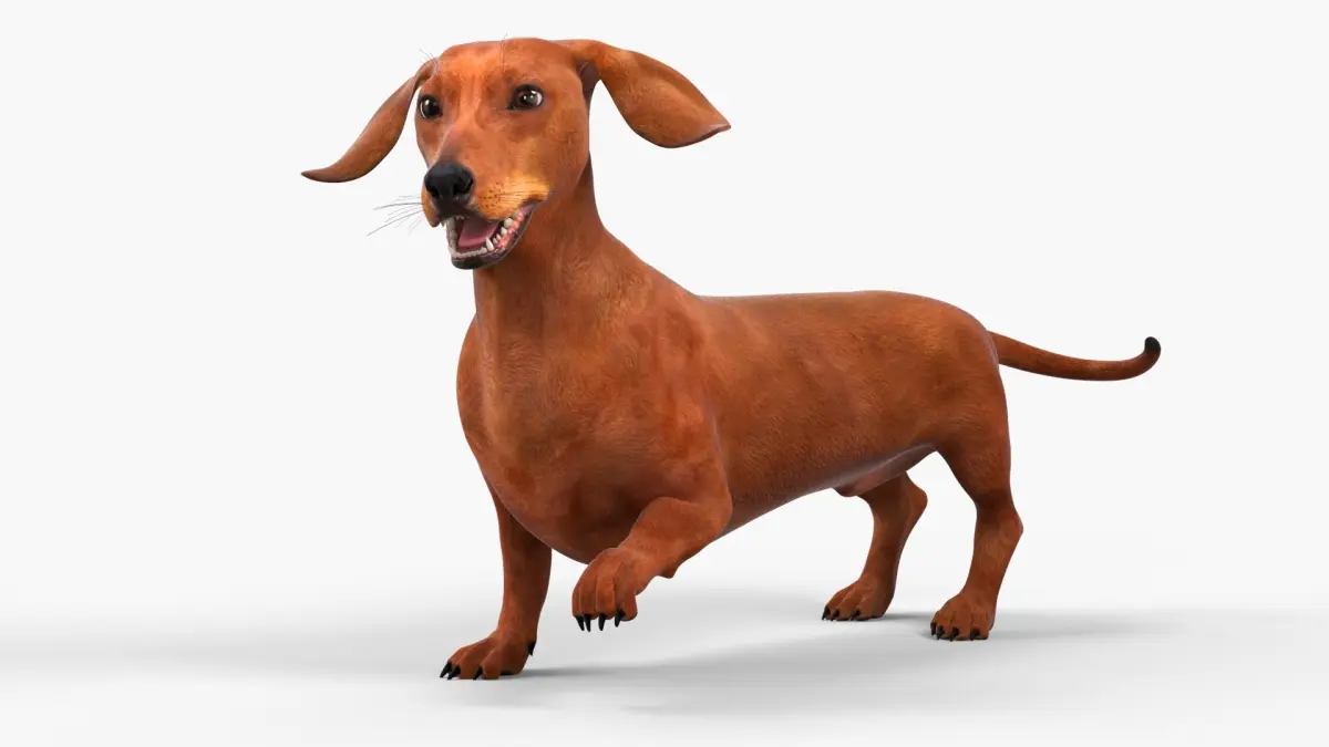 Smooth Dachshund Dog with Red Coat Rigged is a three-dimensional model of dachshund, a popular breed known for its distinctive long body and short legs, often referred to as a "wiener dog."