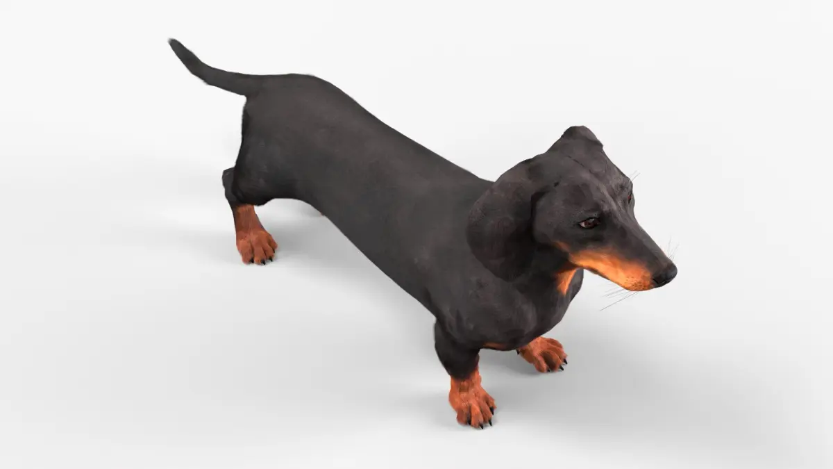 This model accurately captures the dachshund's physical characteristics, including its elongated body, floppy ears, and expressive eyes. With a detailed texture and realistic shape, it embodies the unique charm and playful nature of this beloved breed, making it ideal for various creative projects.