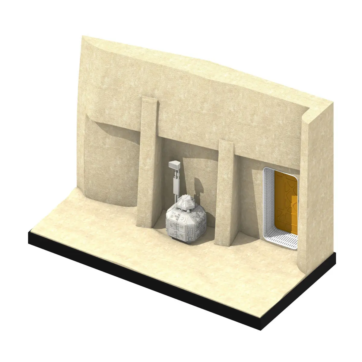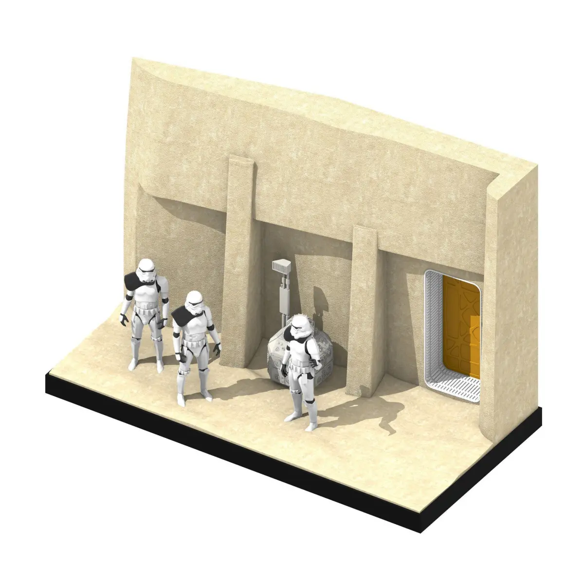1:12 ScaleDesigned in collaboration with Figureworks, this set is made for Black Series / Figuarts collectorsThe building structure can be printed on a Ender 3 bed size, but the floor pieces are designed to be printed on a Creality CR-10 bedIncludes doorway and door panel / fusion generatorThe floor has slots for circle magnets to be inserted