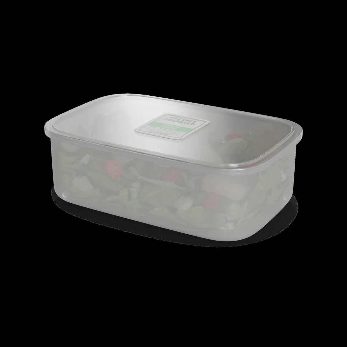 Chicken Caesar Salad: A classic salad with a twist, this chicken Caesar salad is a refreshing and satisfying meal option. Packaged in a clear plastic container, the salad is layered with crisp lettuce, grilled chicken, croutons, and a creamy Caesar dressing. The packaging features a clean and modern design, using a combination of green and white colors. A label with the text Freshly Prepared Daily assures customers of its quality.