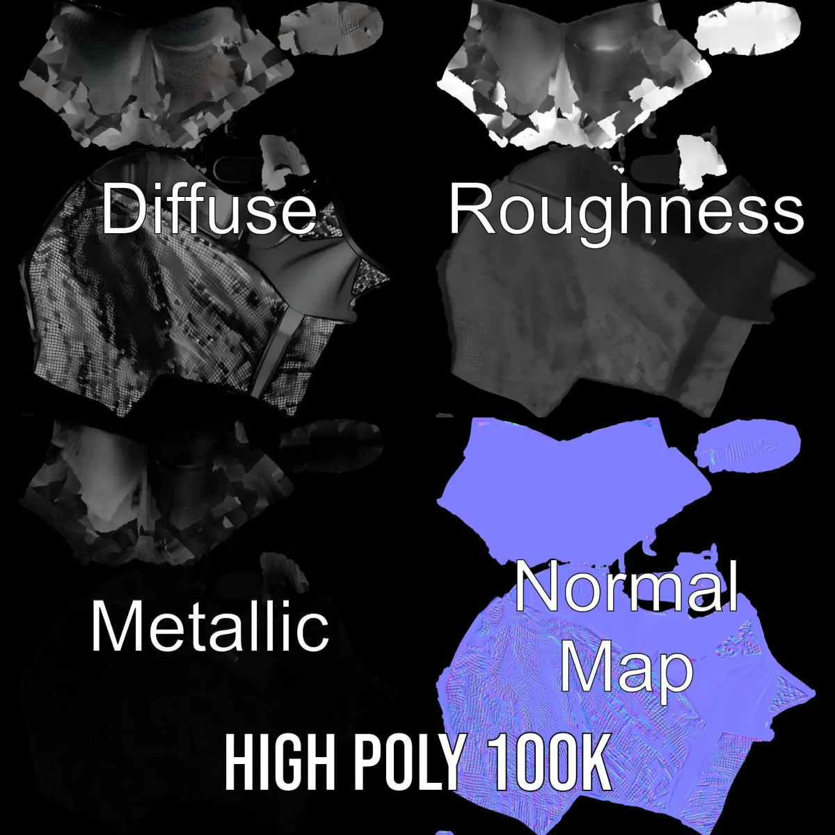 This versatile Snake Pattern Ankle Boots 3D Model Pack includes models with three levels of detail: low-poly (1000 triangles for mobile), middle-poly (10,000 triangles for environment usage), and high-poly (100,000 triangles). Ideal for various applications such as production rendering in software like 3ds Max, Maya, Cinema4D, Blender, Vray/Corona/Cycles, it is also compatible with game engines like Unity and Unreal for interactive presentations. These models feature realistic PBR textures (Diffuse, NormalMap, and reflection/roughness/metallic), accurately unwrapped with no overlapping UVs. The high-resolution textures are 4096*4096 in size. Perfect for use in fashion design, virtual try-ons, product visualization, and advertising. The first image is the reference used for creating the 3D model. It is important to carefully evaluate the quality of the model by examining the preview images that display the topology and polygonal mesh. These previews (WIRE and WEB 3D Preview) clearly demonstrate how accurately the model matches the original reference and how well the geometry has been executed. If you liked this model, please give it a like and leave a comment!