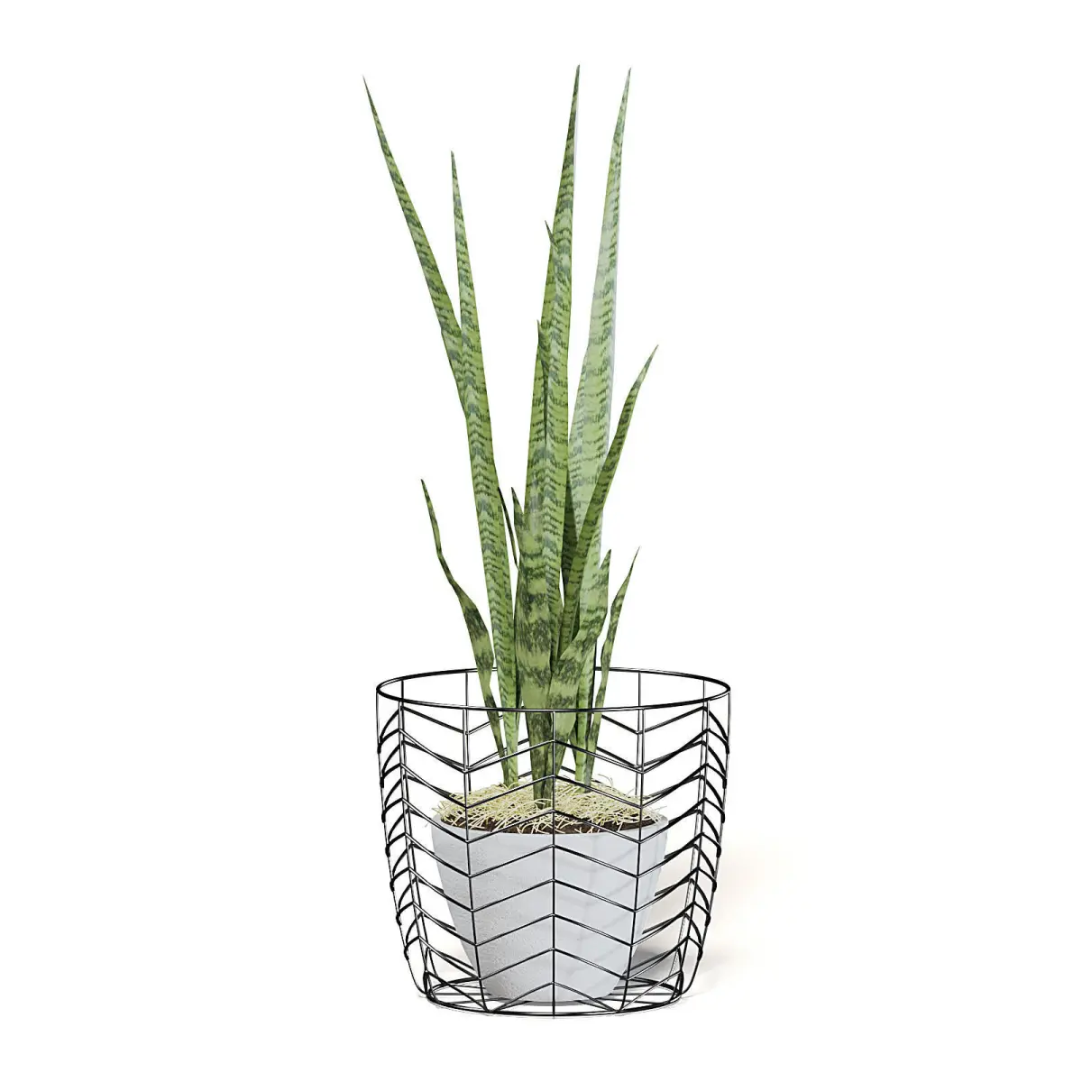 Snake plant 3d model in white pot and black metal grid. Compatible with 3ds max 2010 (V-Ray, Mental Ray, Corona) or higher, Cinema 4D R15 (V-Ray, Advanced Renderer), Unreal Engine, FBX and OBJ.