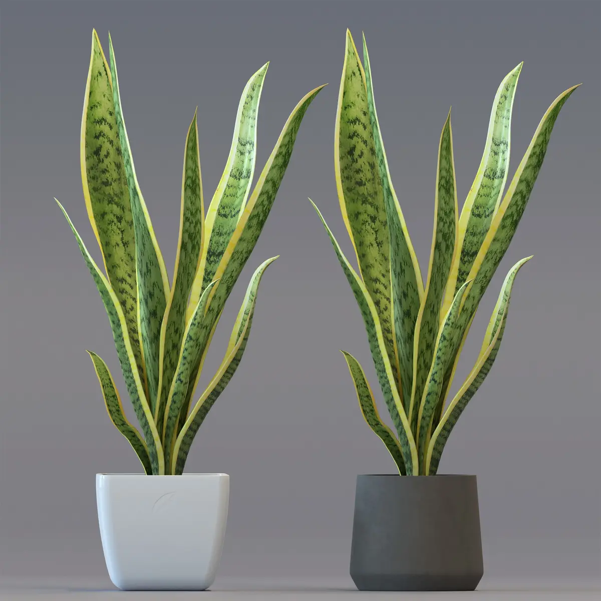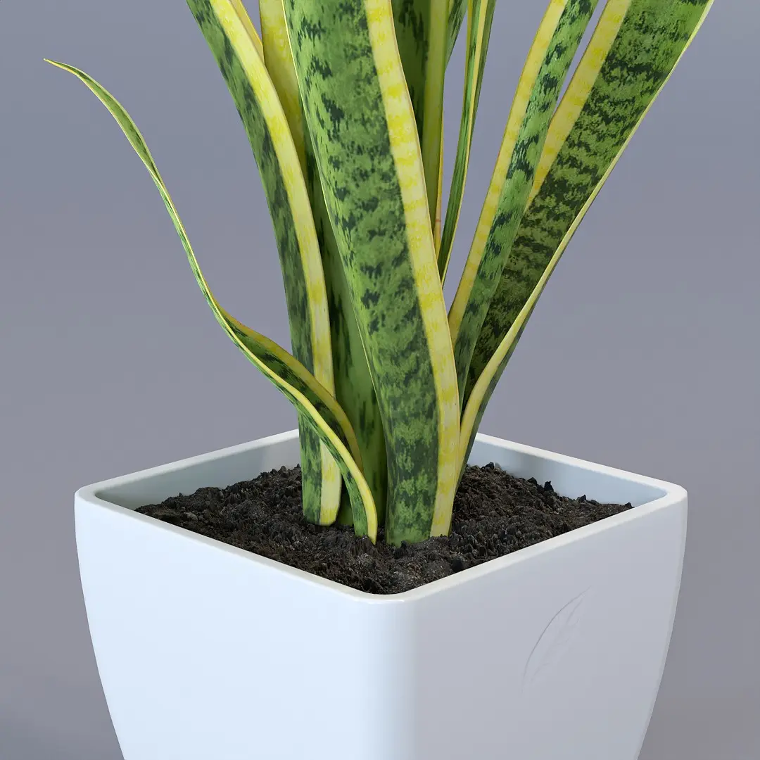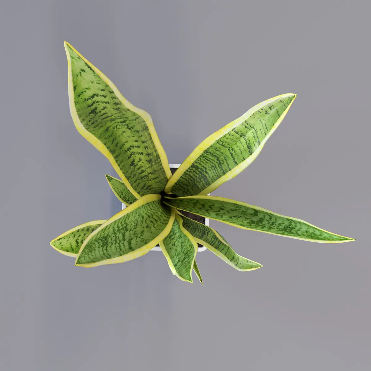 A 3D model of a Snake Plant. All textures are based on a real plant. The set comes with two types of pots and a soil material. All textures are in 2048 / 4098 px resolution and include the following maps: BaseColor / Roughness / Metallic / Normal / Displacement / Subsurafce Color.