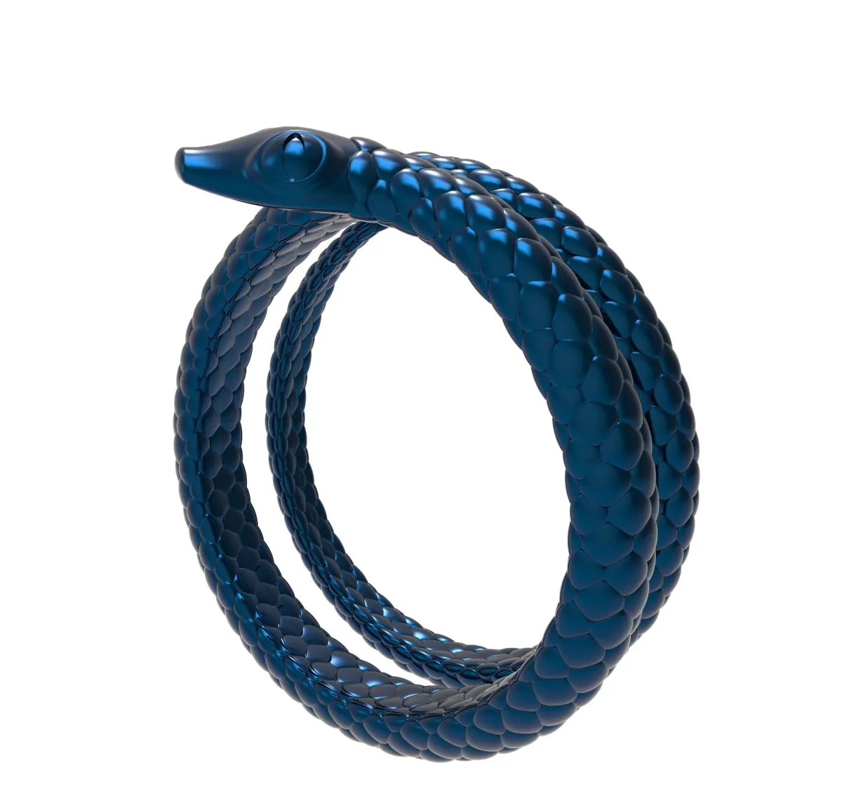 imagine a snake spinning around your finger, with shiny metallic surface.thats so much power full.use it to know.the hole of this ring is about 20mm, you can rescale it.I attached original file that I made in rhino, so if you expert you can change it easier.