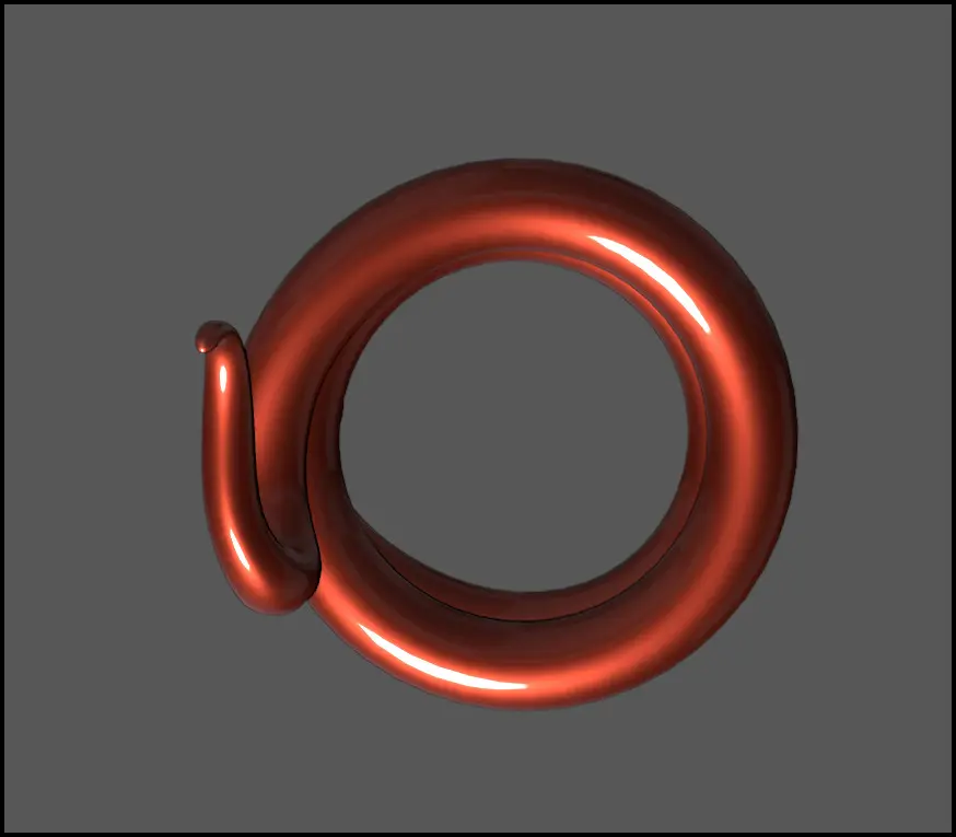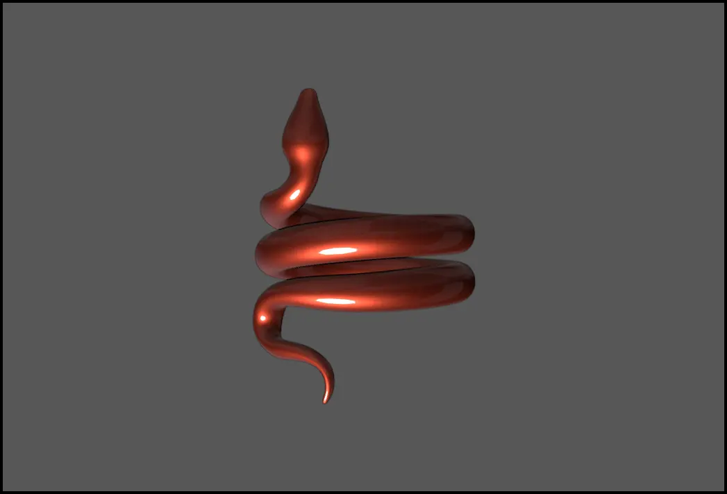 This captivating 3D model presents a snake-shaped ring with a sleek and modern design. The ring, coiled gracefully into a spiral form, showcases the snake's head poised confidently at the top while the tail curves smoothly below. The glossy, metallic reddish-brown surface adds a luxurious touch, highlighting the intricate details and reflective finish. This unique piece of jewelry exudes sophistication and charm, making it an eye-catching accessory for anyone who loves bold and elegant designs.