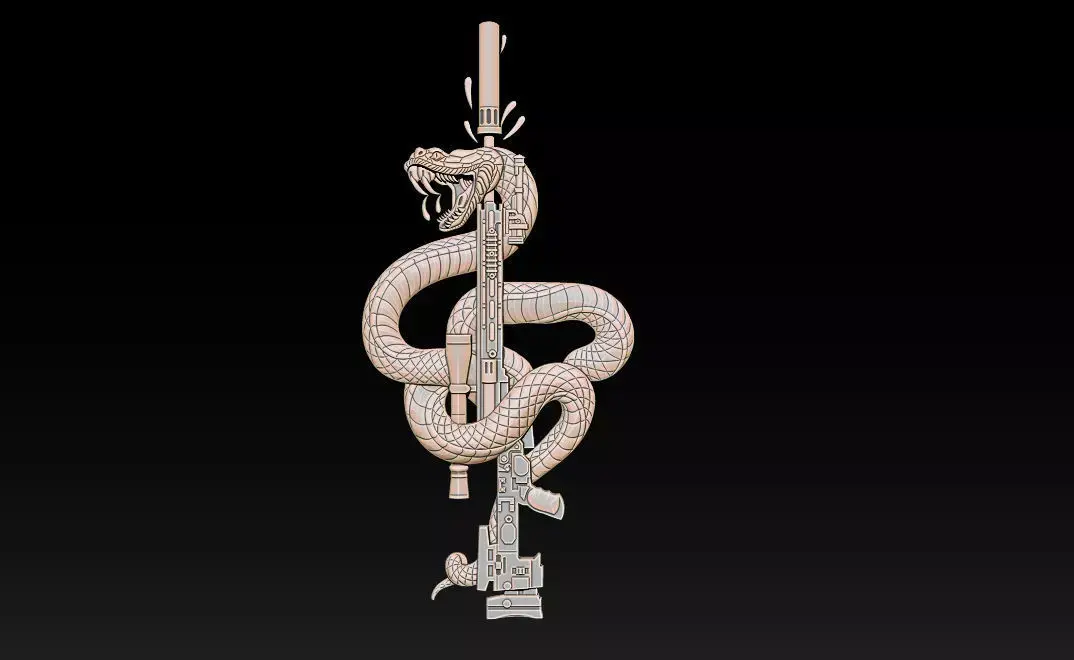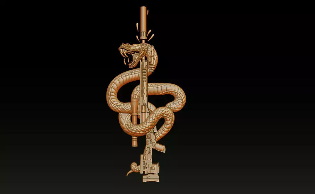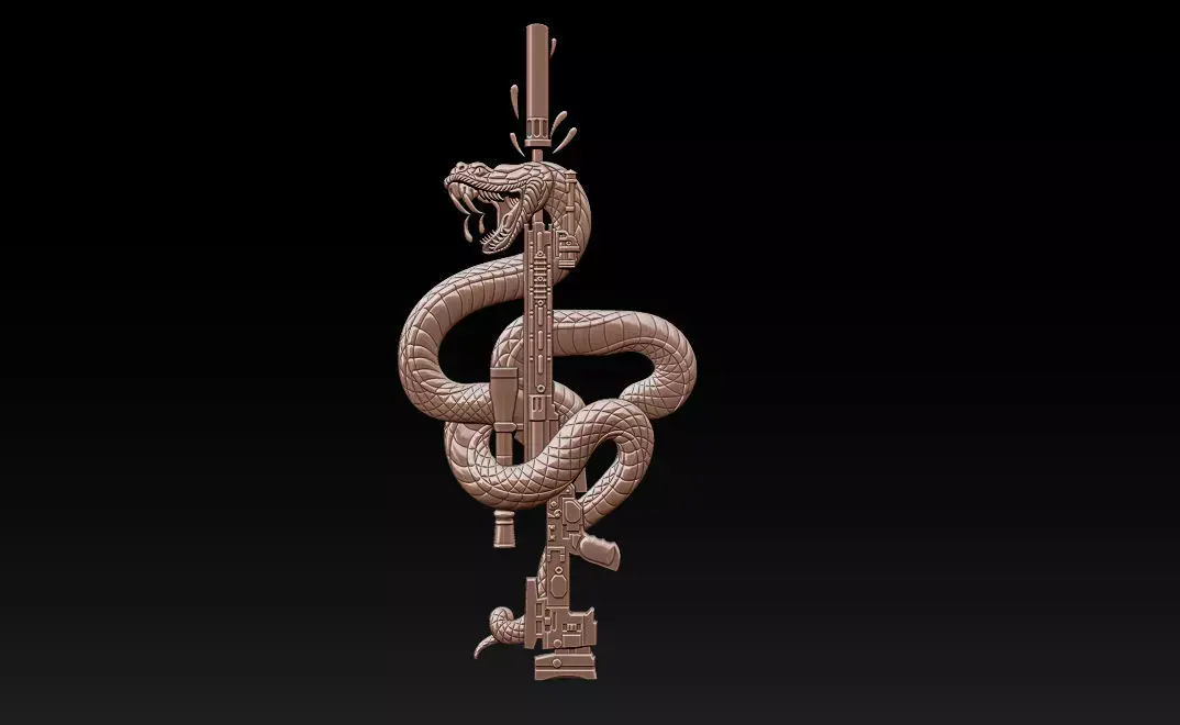 High-detail Snake Wrapped Rifle 3D bas-relief for CNC carving, 3D printing, and laser engraving. Includes STL, OBJ, ZTL. Clean mesh, ready for production. Digital download only.This is a high-detail 3D bas-relief model featuring a powerful design of a serpent wrapped around a rifle. The model is crafted with sharp scales, clean forms, and optimized depth—perfect for CNC routers, 3D printing, laser engraving, and decorative wall art or tactical-themed projects.Included formats: STL, OBJ, ZTLP:413669V:410116