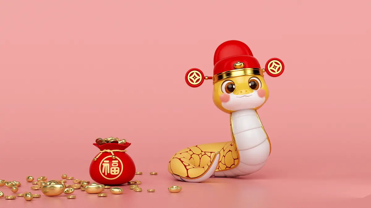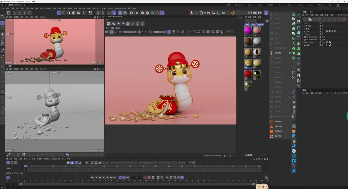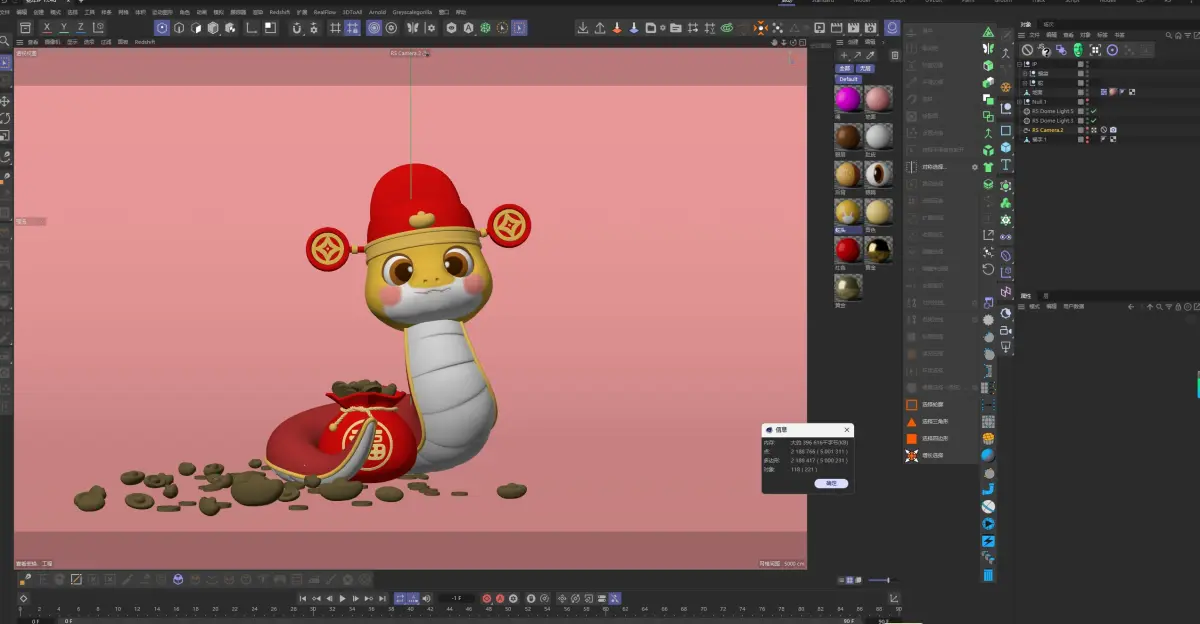 The Snake Year IP is modeled using C4D in combination with ZBrush. The snake's head is created as a high-poly model in ZBrush, featuring a higher polygon count, while the body is modeled in C4D with a lower polygon count for easier adjustment of its form.