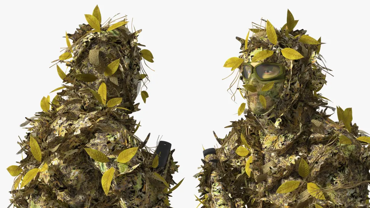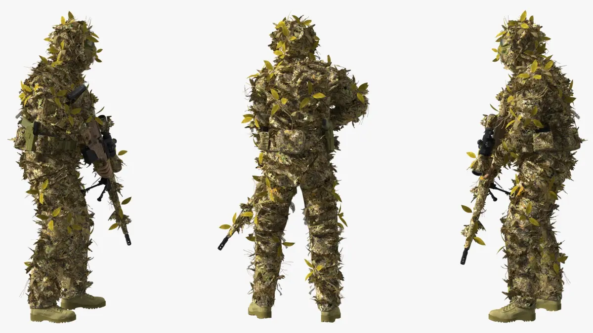 A sniper is a highly trained soldier who specializes in shooting targets with modified rifles from incredibly long distances. They're also adept in stealth, camouflage, infiltration, and observation techniques. A ghillie suit is known as a camouflaged outfit, one worn by snipers, hunters and soldiers so that they can't be easily detected.