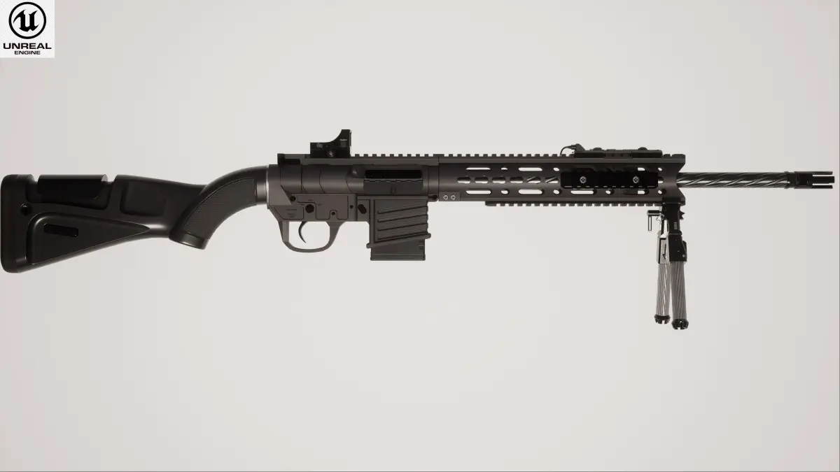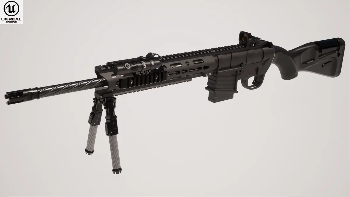 This Sniper Rifle 2 is a high quality, photo real model that will enhance detail and realism to any of your rendering projects. File units - cm. The model has a fully textured, detailed design that allows for close-up renders, and was originally modeled in 3ds Max 2021 and rendered with Unreal Engine 5 and V-Ray.