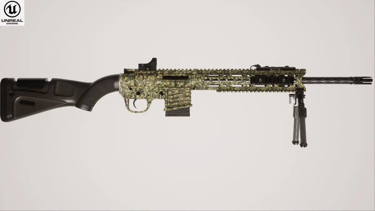 This Sniper Rifle 2 Used is a high quality, photo real model that will enhance detail and realism to any of your rendering projects. File units - cm. The model has a fully textured, detailed design that allows for close-up renders, and was originally modeled in 3ds Max 2021 and rendered with Unreal Engine 5 and V-Ray.