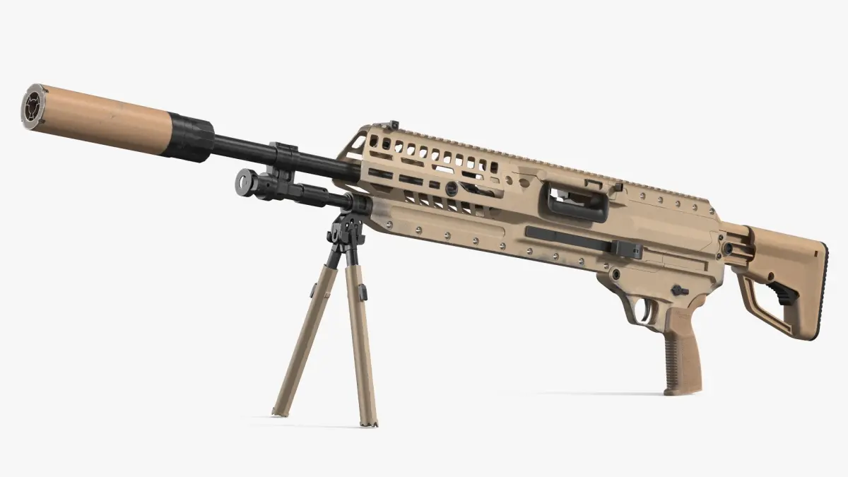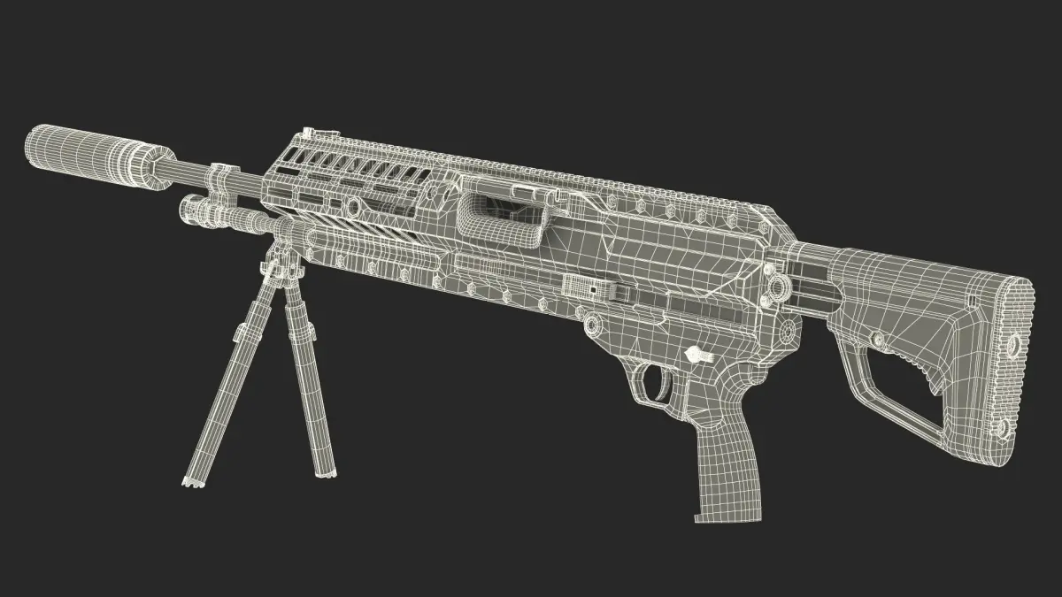 For military training simulations, tactical shooter game design, defense visualizations, cinematic animation, virtual reality weapons handling, educational firearm models, ballistic simulation platforms, and realistic 3D asset kits for security-themed media.