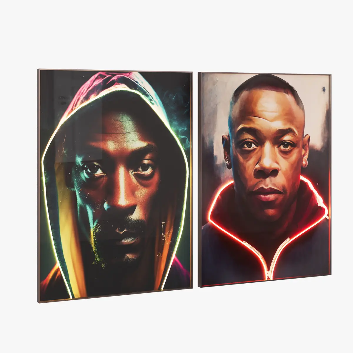 - Set of posters in frames with neon decor;