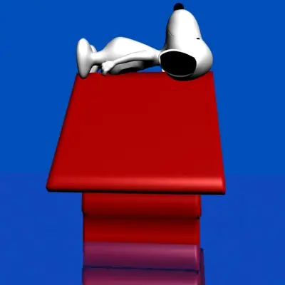 Snoopy 3D made with 3D studio max V8. the model is fully rigged, with his doghouse no textures are needed, just unzip and render . Available in the following formats max 8, 3ds, obj, dxf have fun ;)
