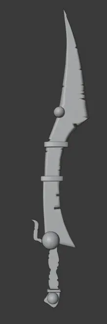 3D model created with realistic textures, high polygon loading (High-Poly) and with its own design on textures. It consists of 4 parts: blade, handle, guard and knob.