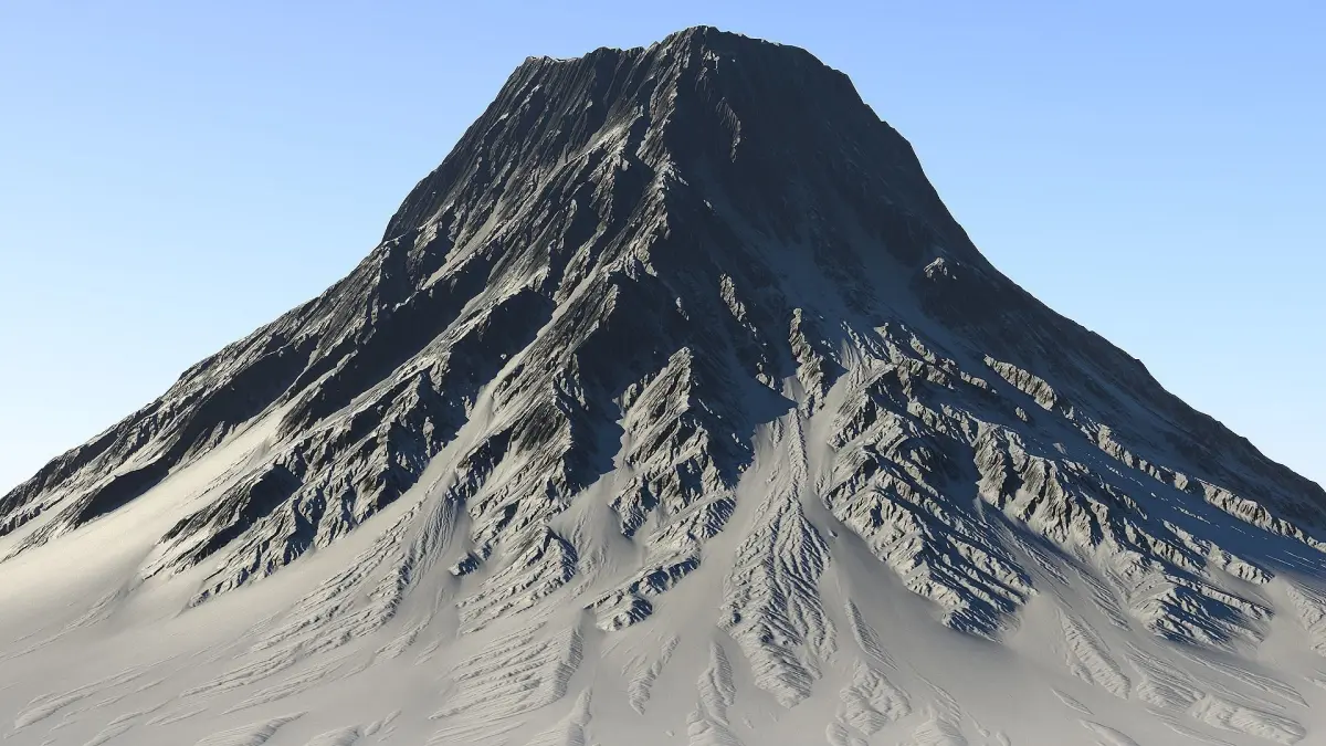 This huge and detailed volcano is an impressive landmark for your landscape visualization projects.