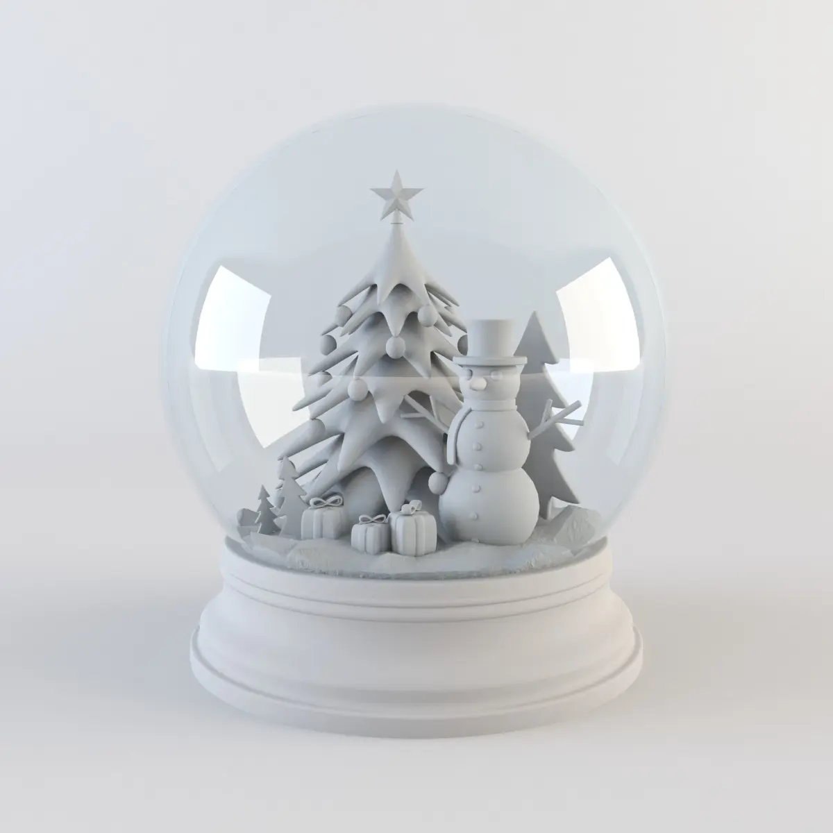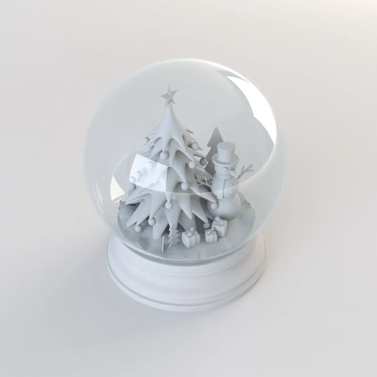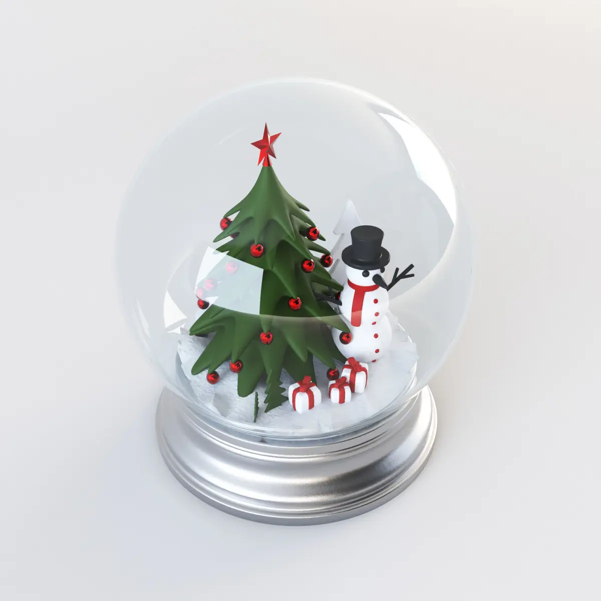 Snow globe is a traditional Christmas accessory that is seen in any seasonal scene. The model includes low - poly models of a Christmas tree , gift boxes and a snowman.