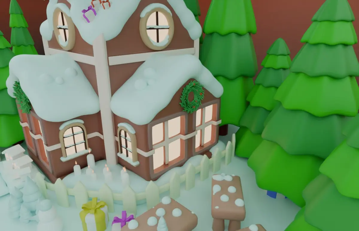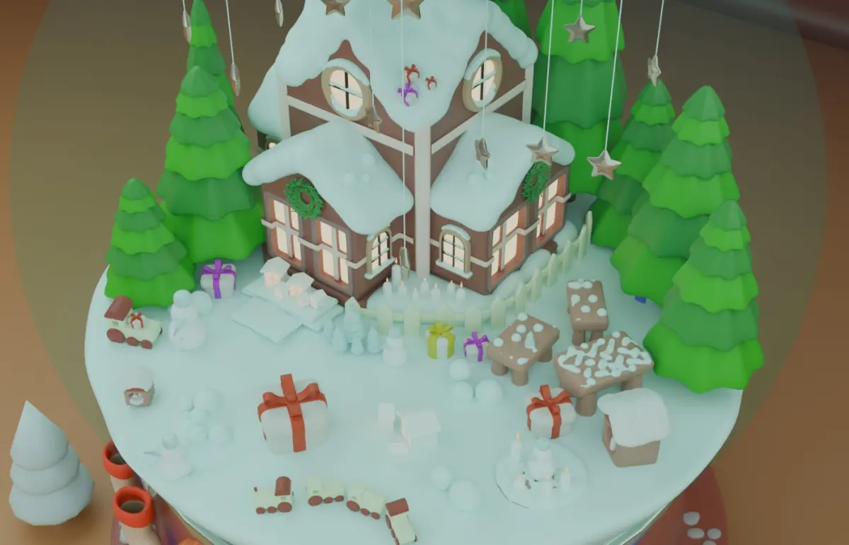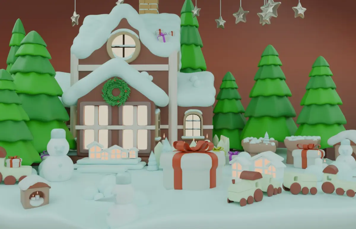 Holiday-Themed Projects: Great for Christmas marketing, greeting cards, banners, and festive visuals.Decorative Use: Perfect as part of a collection for showcasing 3D environments or as a centerpiece for winter-themed portfolios.Customization Opportunities: Whether for personal or professional use, the scene can be tailored to meet your specific needs upon request.Technical Information:High-resolution render available.File format: [Include formats, e.g., PNG, Blender project file, etc.]Customization options available upon request.