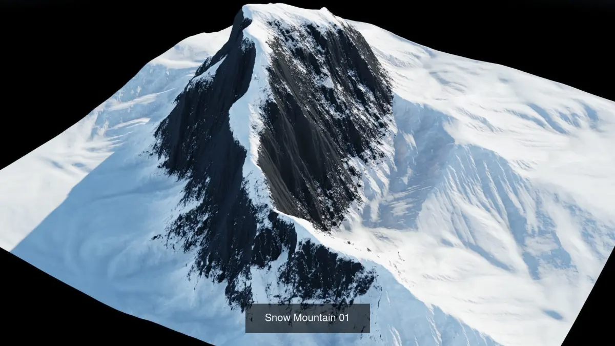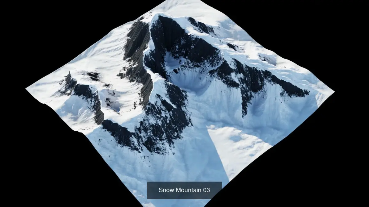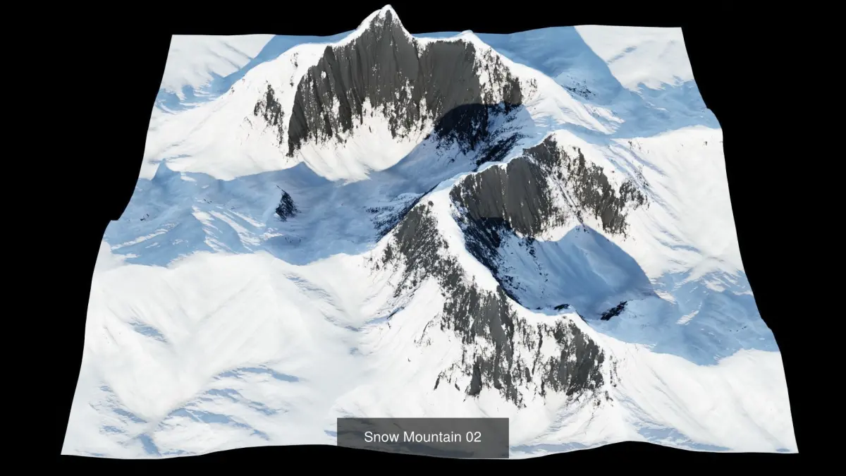 This model was made in World Creator 2. This map covers an area of 2048m by 2048m.This collection comes with 5 different snow mountains.