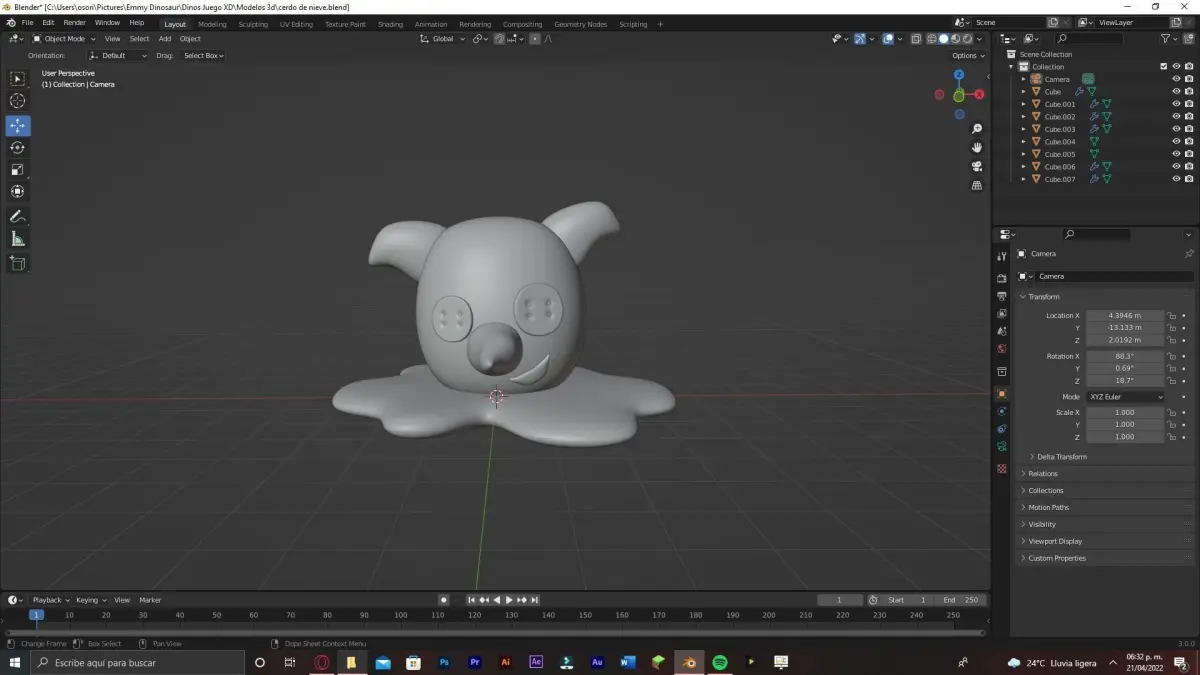 This is the snow pig, one of the pigs that will come out as a collection of pigs called the crazy pigs. This 3D model will be used to create wallpapers, for 3D printing, ETC.Note: The model only works in blender, because the textures can only be displayed in that program.Hope you like.