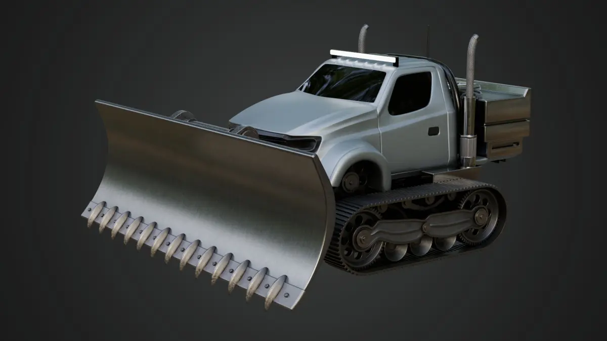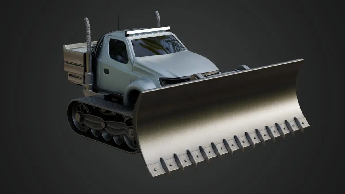 In architectural visualizations focused on urban development in cold climates, the snow plow adds realism and technical detail. It represents the capability of modern technology to adapt to and manage extreme environments like snowfields, roads, and sidewalks in urban or suburban settings. The silver finish and curved shape provide a sleek aesthetic, making it suitable for contemporary urban planning visuals while highlighting the integration of advanced utility vehicles in public maintenance. Additionally, the snow plow can be effectively incorporated into apocalyptic or post-apocalyptic scenes, where its resilient and robust design symbolizes survival and adaptability in harsh, uninhabitable environments.