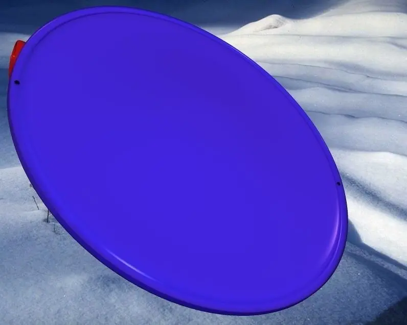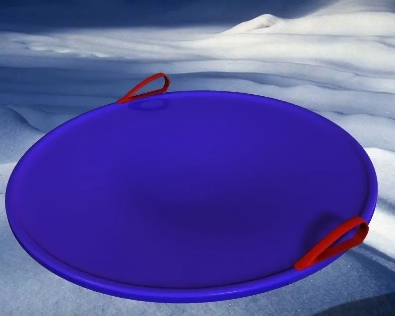 Your classic one person plastic saucer sled with built in handles. Plastic snow Saucer for hours of fun sledding downhill. Winter Fun for all ages. Zip file contains .obj and .mtl files for the sled. Colors can easily be changed in your material editor.