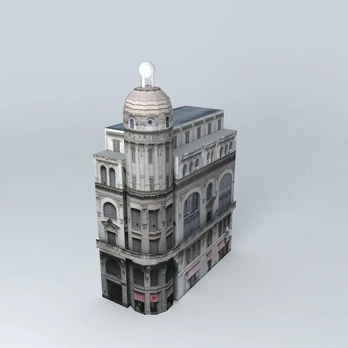 This 3D model was originally created with Sketchup 15 and then converted to all other 3D formats. Native format is .skp 3dsmax scene is 3ds Max 2016 version, rendered with Vray 3.00 First tall building in the city of Rosario. The name is because it was commissioned by the CIA. Insurance "Snowball" and its dome crowning sphere. It was designed by French architect Le Monnier and opened in 1907, his style is a mix of eclecticism and Academics. The day this model 16/12/09 moved to correct a despalzamiento in new satellite image