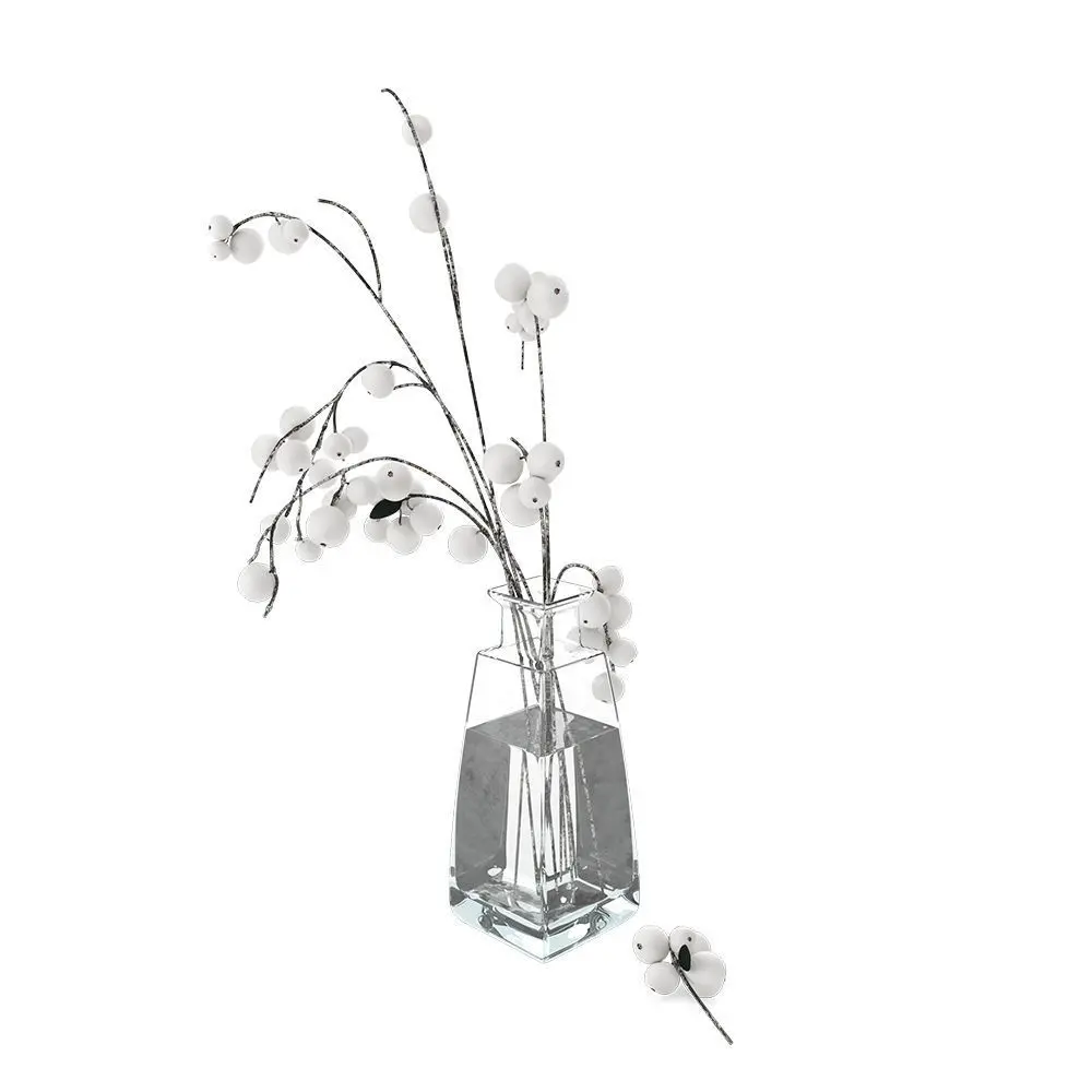 Snowberry branch in glass vase, suitable for interior decoration.