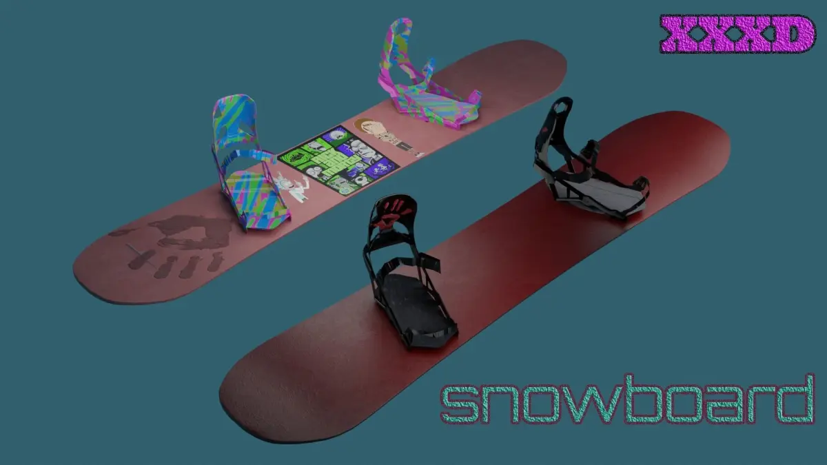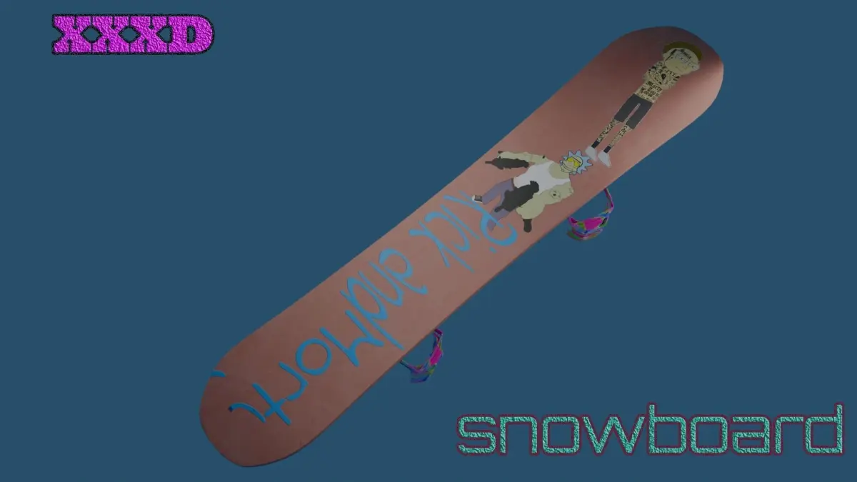 2 snowboard models with different textures. One with Rick and Morty and one with The Dark Brotherhood. The model includes the part of the snowboard itself, the board and plus the binding to the snowboard, also in different texture colors.There are a lot of polygons in the bindings, but there are few of them in the snowboard itself . Snowboarding, snowboarding is a winter Olympic sport, which consists in descending from snow-covered slopes and mountains on a special equipment - a snowboard. Originally a winter sport, although some extreme sportsmen have mastered it even in summer, snowboarding on the sandy slopes.