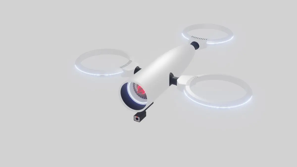 An aesthetically-pleasing bladeless futuristic sci-fi drone. It is a modular design and has three ring-like exhaust and equipped with a camera module. It blends easily and can make a fantastic addition to any futuristic sci-fi game or environment.