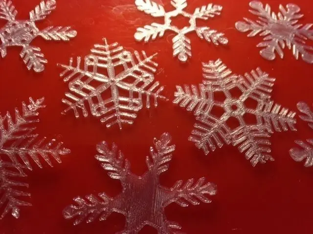 Lots of tiny snowflakes for some kind of winter/holiday use. The snowflake designs are from a vector-graphics snowflake patterns file on Zezu (http://www.zezu.org/beautiful-snowflake-patterns-vector/). For step-by-step instructions on an easy way to turn a picture into something 3D printable, see the website below. http://makerhome.blogspot.comUPDATE: These are now remixed as thicker, hangable ornaments at http://www.thingiverse.com/thing:195032