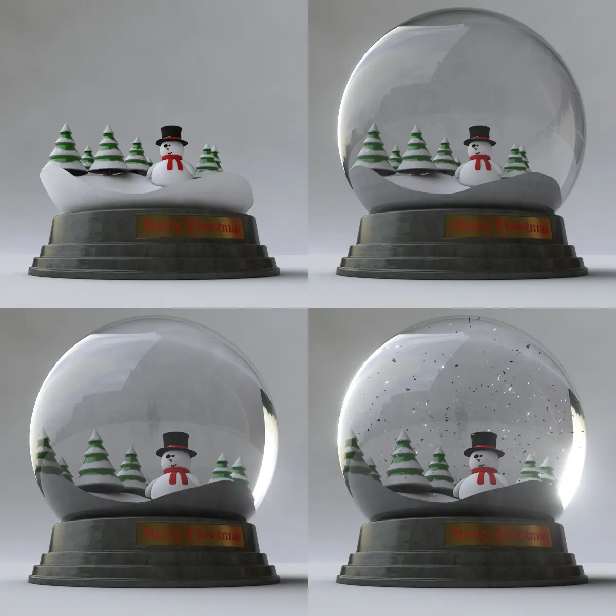 The model is set for a '200 Frames Loop Animation' of a double Particle System to simulate the glitter floating in the water inside.