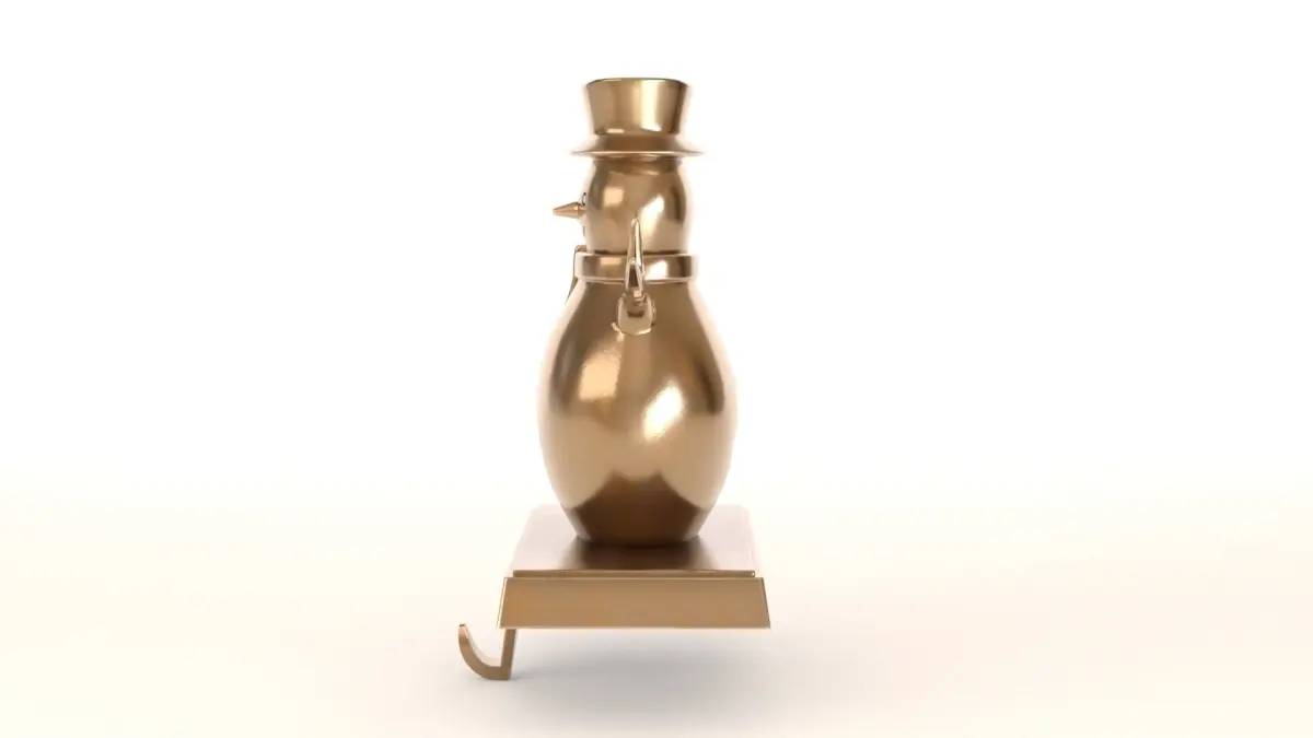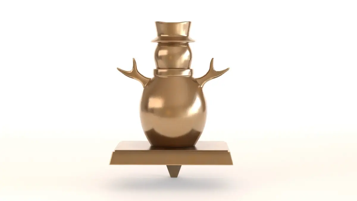 Snowman shaped brass hanger for the Christmas stockings in your holiday scenes. High quality, photo real model with 4K PBR textures that allow for close-up renders. Modeled in Maya 2023 and rendered in Arnold. The mesh is centered at the origin (0,0,0) with the pivot point at the bottom of the flat part of the hanger’s stand so you can easily snap the hanger to a shelf or a fireplace mantel.