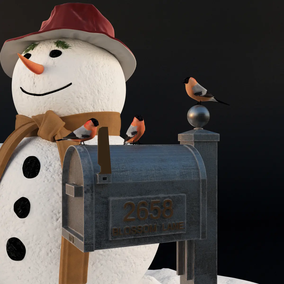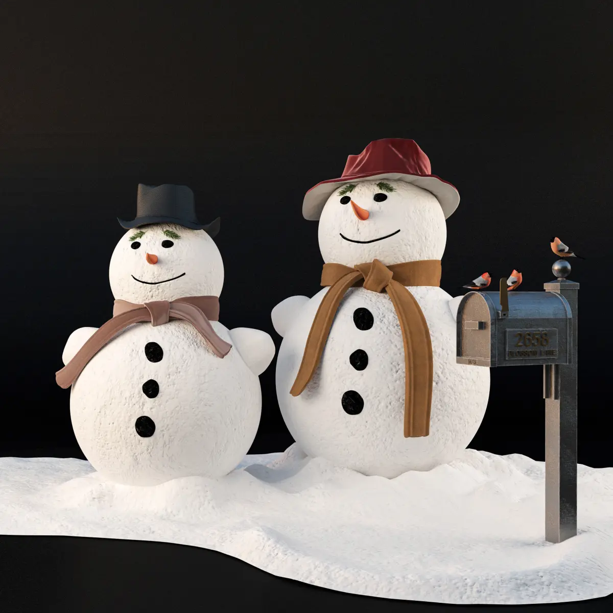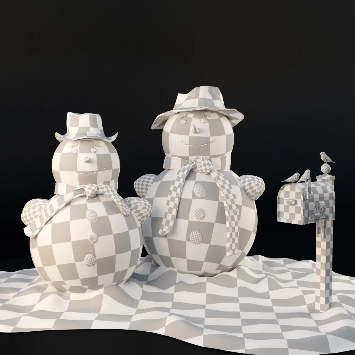 Snowmen with bullfinches202712 polys200716 verts.Formats: 3Ds Max 2015+OBJ