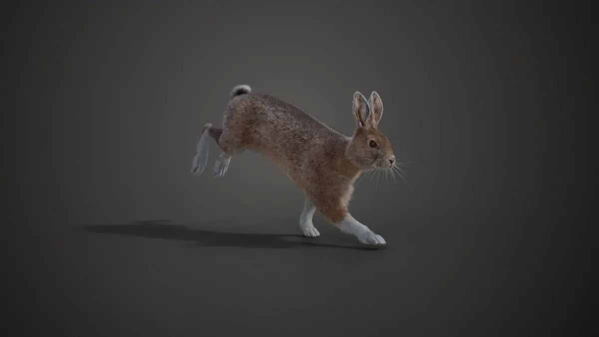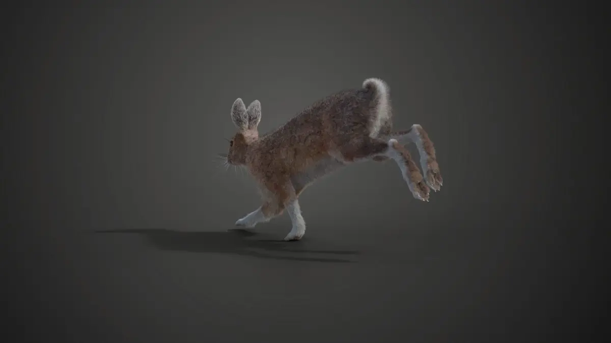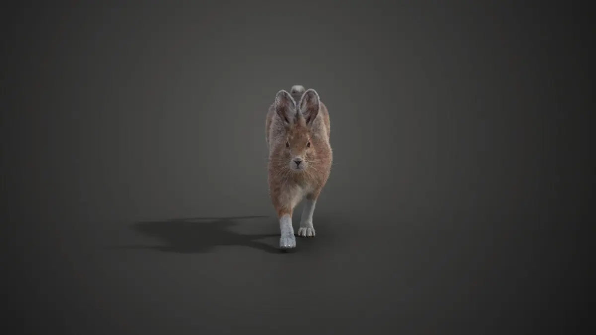 This is a snowshoe hare in the summer with multiple 4K UDIM maps, fur, rigging, and animations. And It's made with Blender and Cycles renderer at real-world scale.