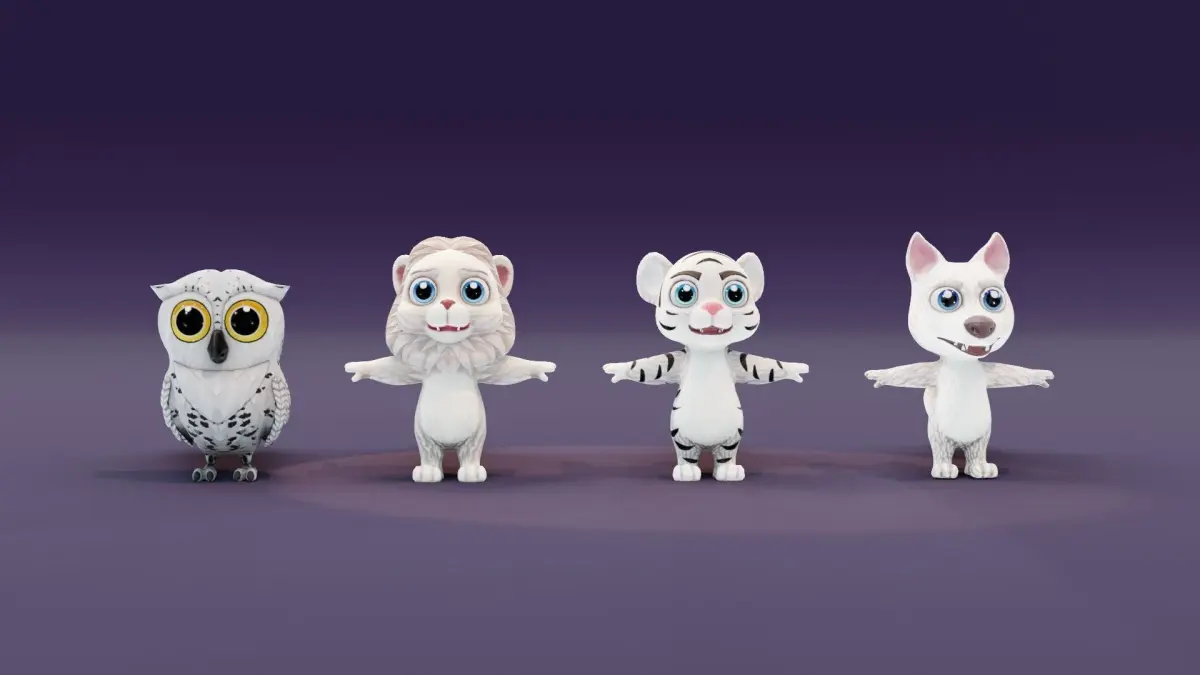 Animated Cartoon Animals 3D Models Pack #7 consists of 4 models (all models share the same style and have similar polycount):