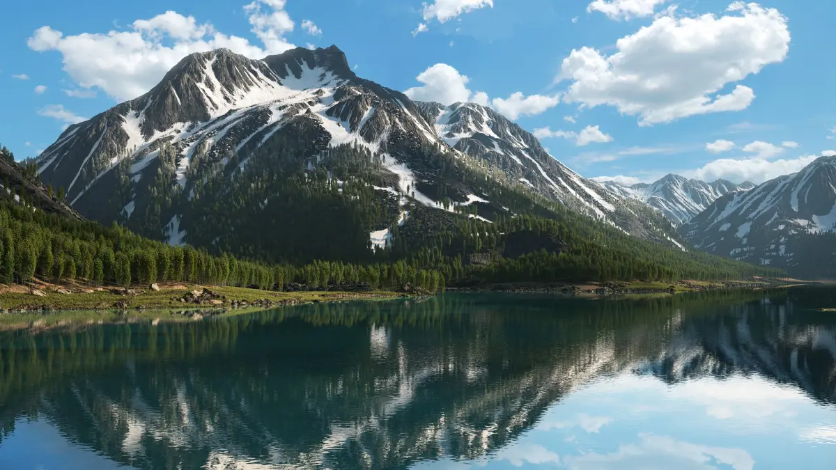 - Snow, rock and grass are distributed using height and slope falloff masks. The main snow layer is applied using a prerendered 8K mask though, but edges are smoothed further using an additional layer of angled snow, therefore you could render closeups.