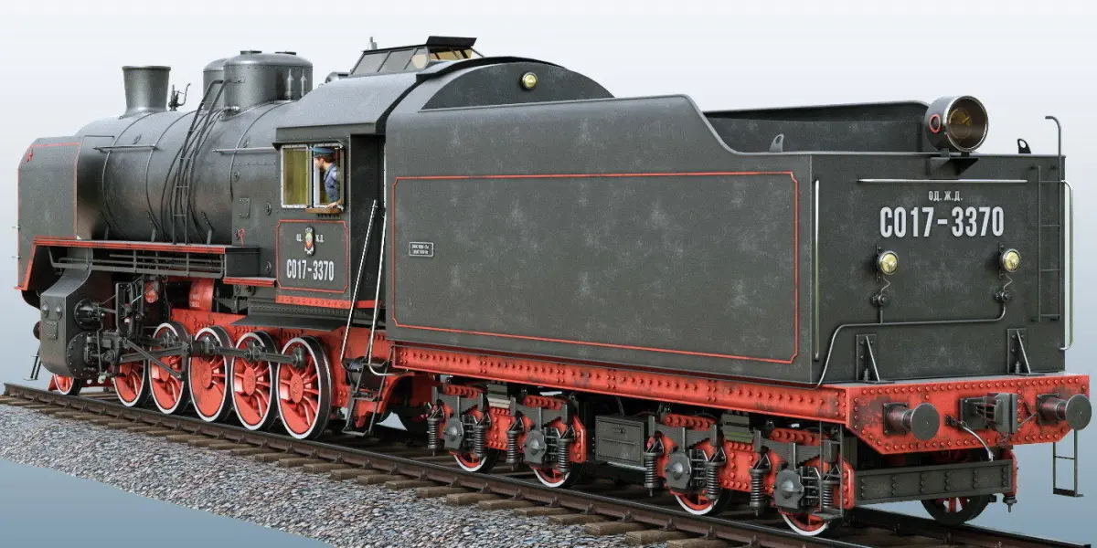 Soviet steam locomotive SO-17. Format: 3dsMax 2013 + obj + fbx, textures in one zip-file. Full exterior and interior. Render - Corona 1,5.HISTORY: SO-17 (Sergo Ordzhonikidze - 17) - the most widespread cargo steam locomotive of Soviet time. Years of construction 1937 - 1951. In total 4487 locomotives have been constructed. This steam locomotive has passed the second world war, helped to restore the country after war. The model is executed under drawings and photos of really working steam locomotive in Kiev, station Darnitsa, Ukraine.