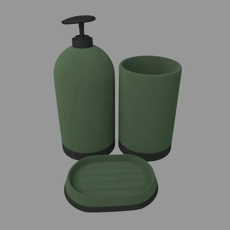 Soap Dispenser in 7 colors: blue, brown, green, grey, peach, purple and red.
