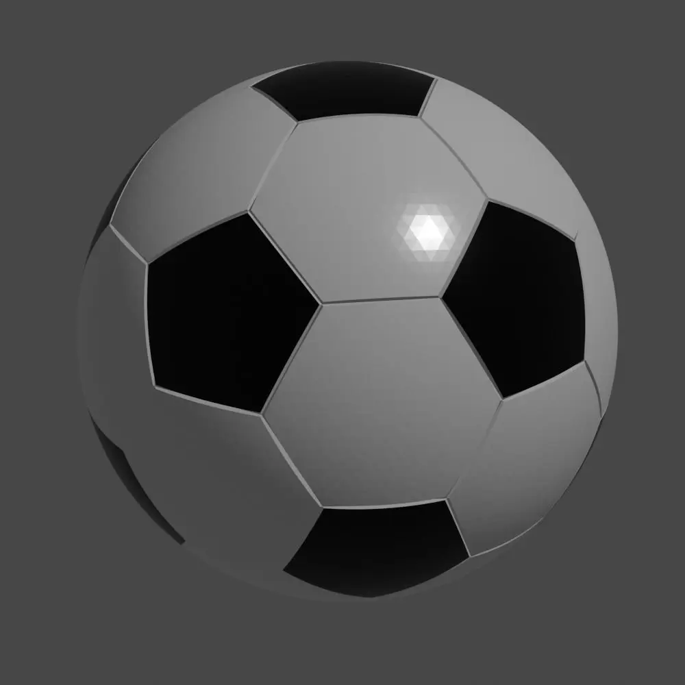Polygons 16380; Vertices 8192. Black and white soccer ball. The sports equipment is designed for kicks and passes made by legs, head and other parts of the body in order to achieve a game advantage of one team over another, to score a goal against an opponent.