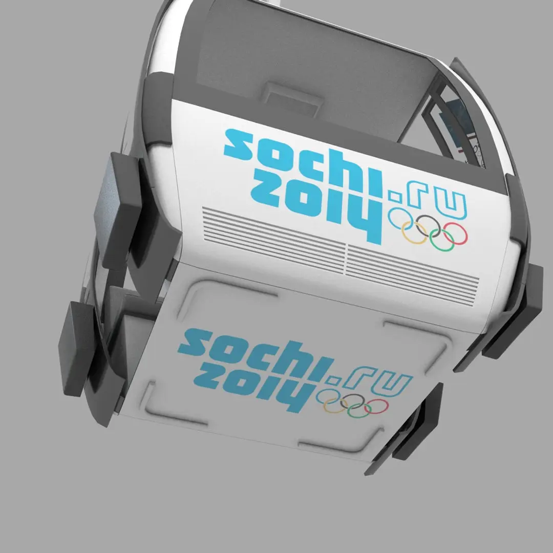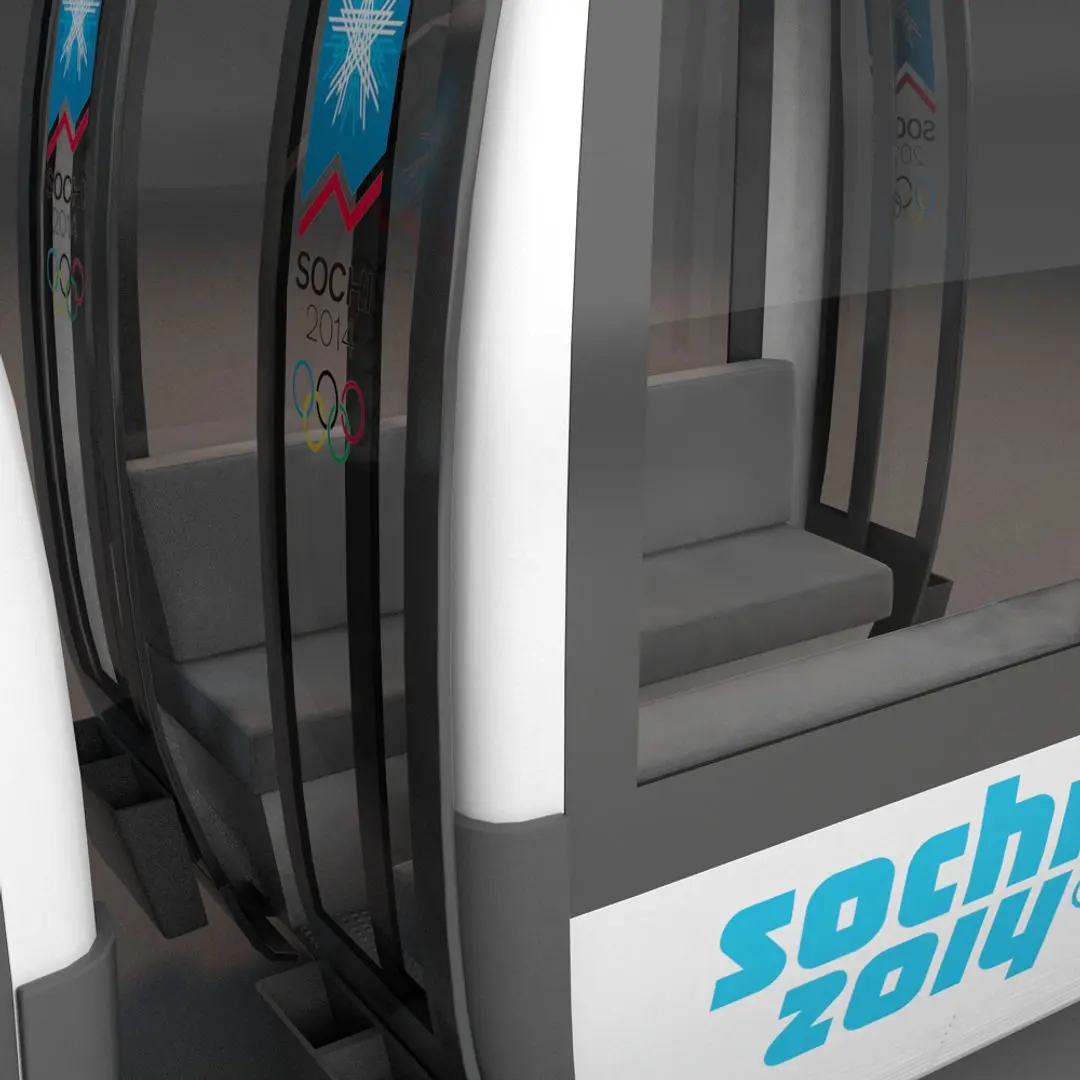 A detailed 3D model of a cableway car / cable car / enclosed ski lift.