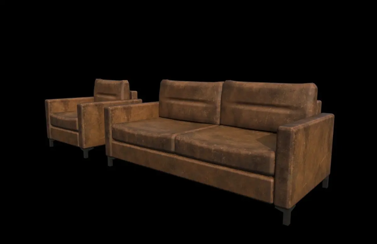 3D Low-poly Sofa and Armchair modeled in Maya and textured in Substance Painter, ready for games.