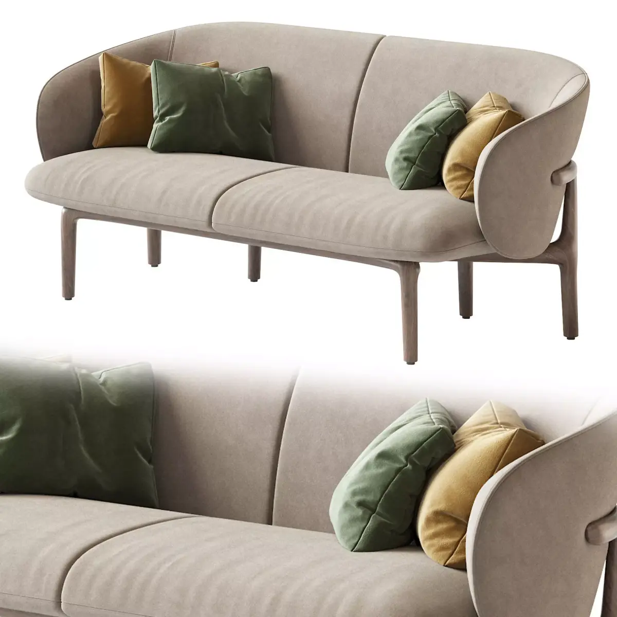 Sofá Mela Lounge dos plazas de la Colección 2019, en maderas de alta calidad y realizado artesanalmente para Artisan de Bosnia. Diseño de Regular Company en Europa, actual y original con acabados suaves.