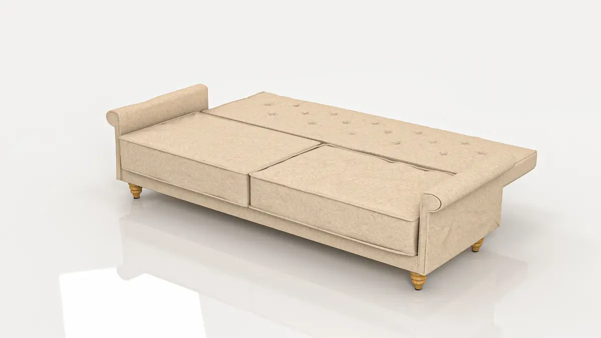 A sofa 3 places in beige fabric that can be trasfomed in a 2 place bed. See the video. The model in fully animated. therre are two series of files: one for the sofa and one for the trasdformed bed. The legs are in light wood. The native version is in 3ds Max 2020 plus 2019, 2018, 2017. Exchange format FBX and OBJ. There is also two different Marmoset viewer preview.