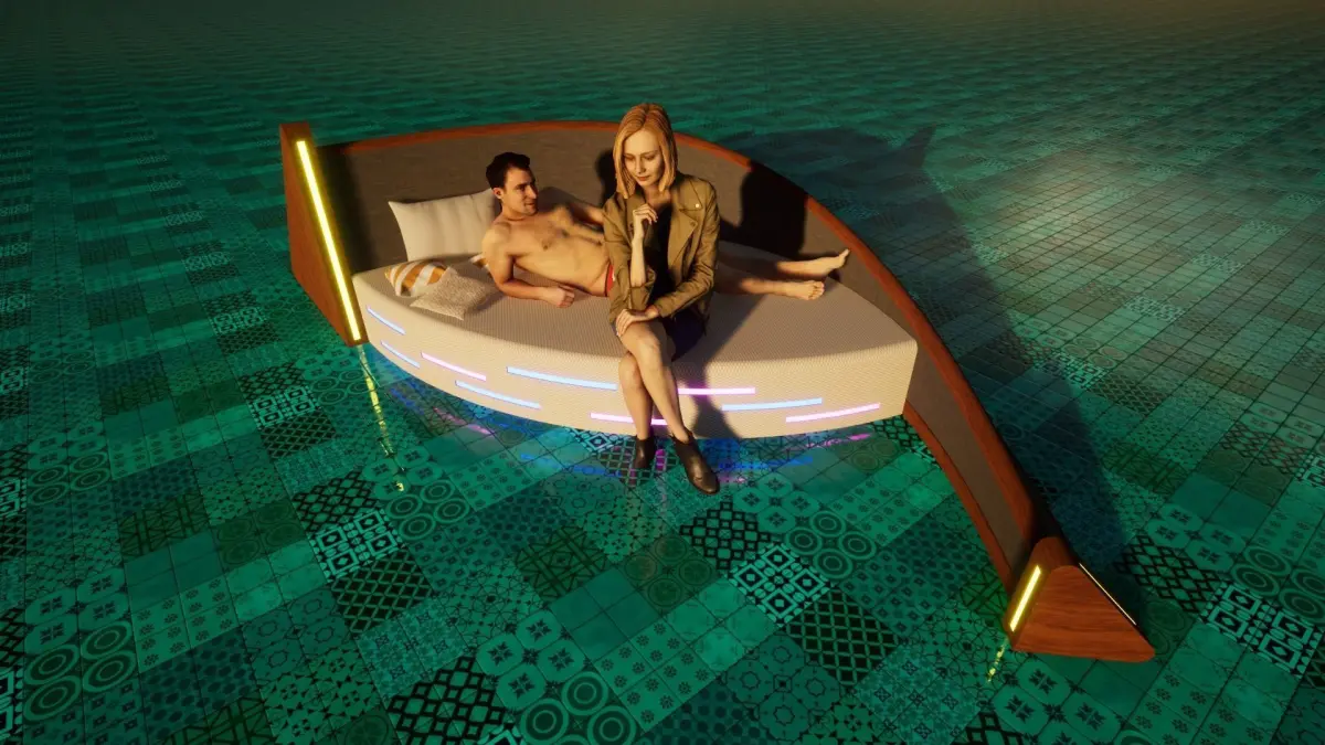 Sofa bed model with neon lights, made in Rhinoceros 7 with PBR materials in 2K resolution.All the PBR material is correctly applied.