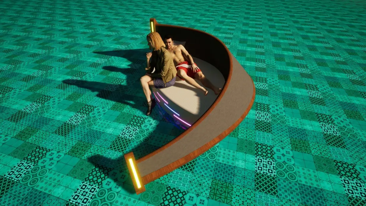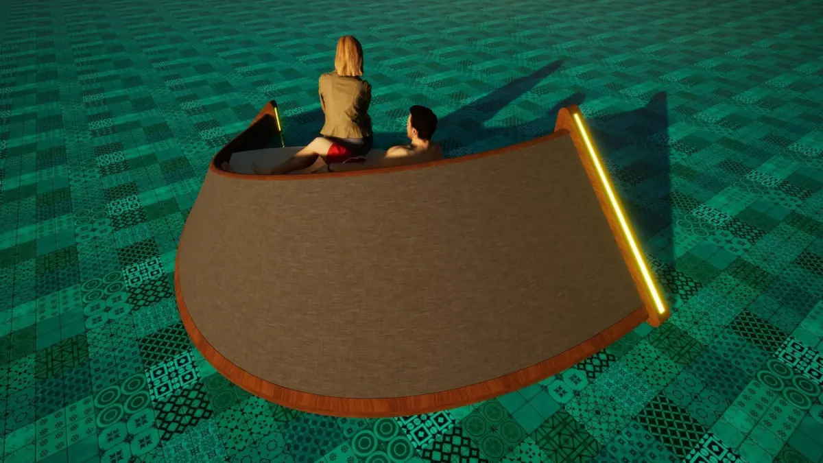 Modelo de sofa cama con luces de neón, hecho en Rhinoceros 7 con materiales PBR en resolución 2K.Todo el material PBR está correctamente aplicado.