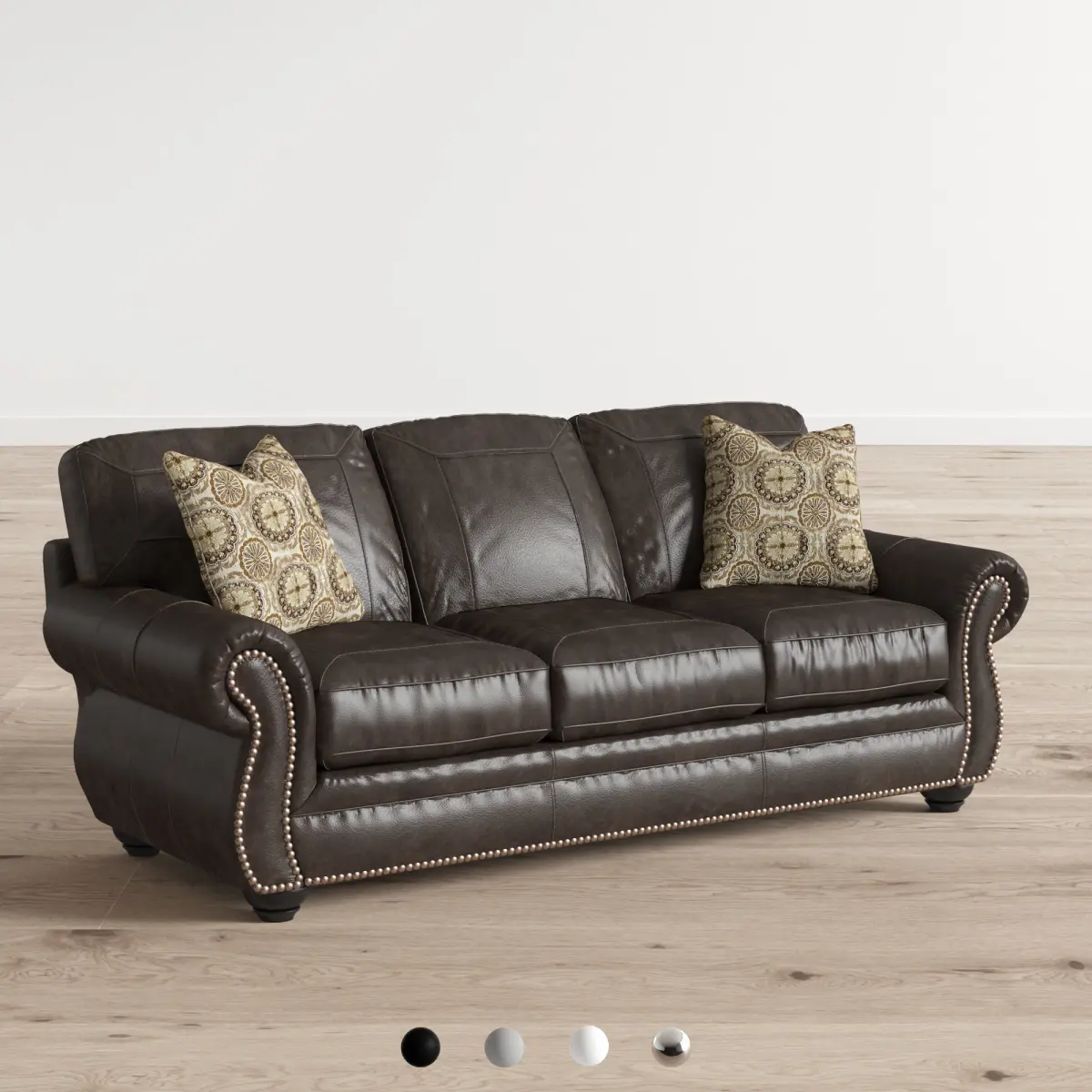 Revel in the ruggedly handsome look of leather—at a fraction of the cost—with this stylish Conesville Sofa. Inspired by the rough and tumble beauty of the Southwest, it sports a “weathered” faux leather crafted for warmth, comfort and everyday living. A touch of nailhead trim adds the perfect punch of character.Overall Height - Top to Bottom: 39Overall Width - Side to Side: 90Overall Depth - Front to Back: 39Seat Height - Floor to Seat: 20.5Seat Width - Side to Side: 67Seat Depth - Front to Back: 22.5Arm Height - Floor to Arm: 26.5Leg Height - Top to Bottom: 3.75Minimum Door Width - Side to Side: 32Minimum Door Width - Side to Side: 32Revel in the ruggedly handsome look of leather—at a fraction of the cost—with this stylish Conesville Sofa. Inspired by the rough and tumble beauty of the Southwest, it sports a “weathered” faux leather crafted for warmth, comfort and everyday living. A touch of nailhead trim adds