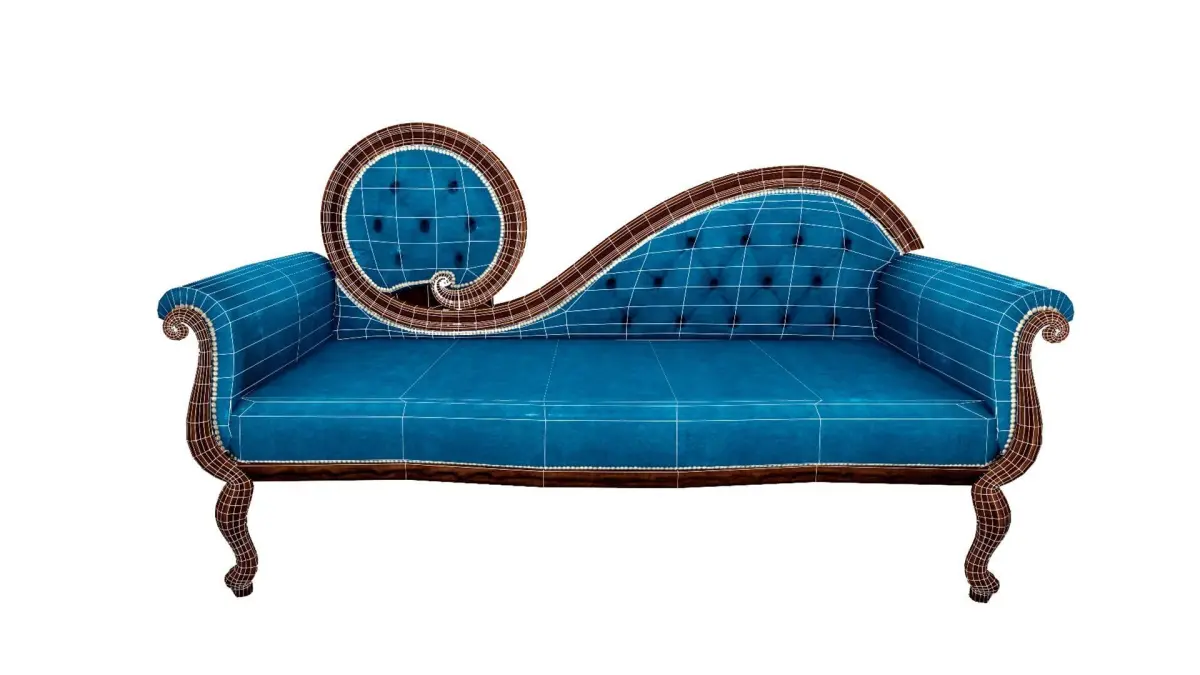 Blue sofa art nouveau inspired for stylized video game. Gold star details. Model is game ready. Origin is set to base, and centre of the world.