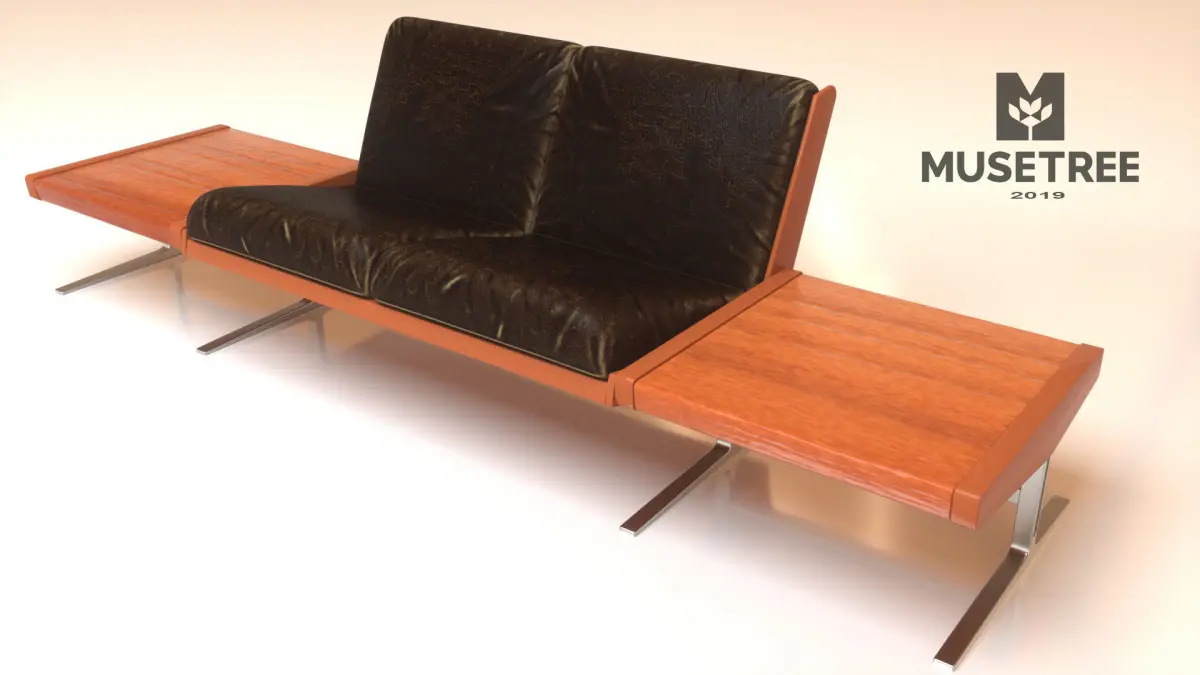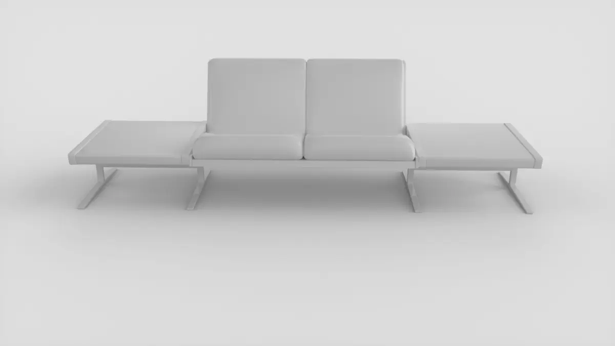 A two seater Q Range sofa with integrated side tables, designed by Robert Heritage for “Race Furniture“ of Sheerness, Kent, circa 1970