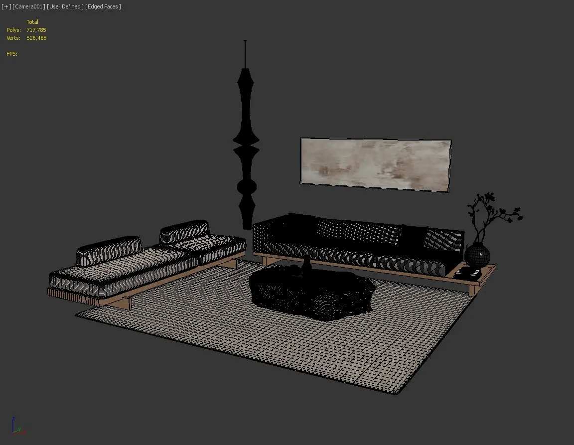 Japanese sofa Loveseat Fabric sofa Coffee table Carpet Painting Floor lamp
