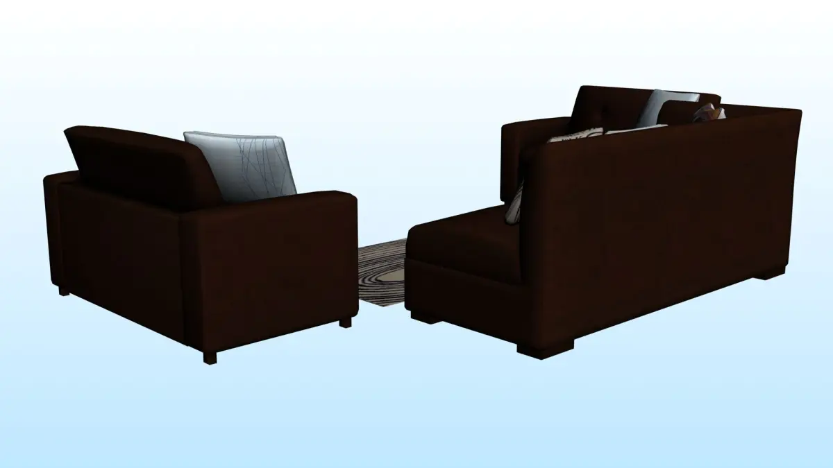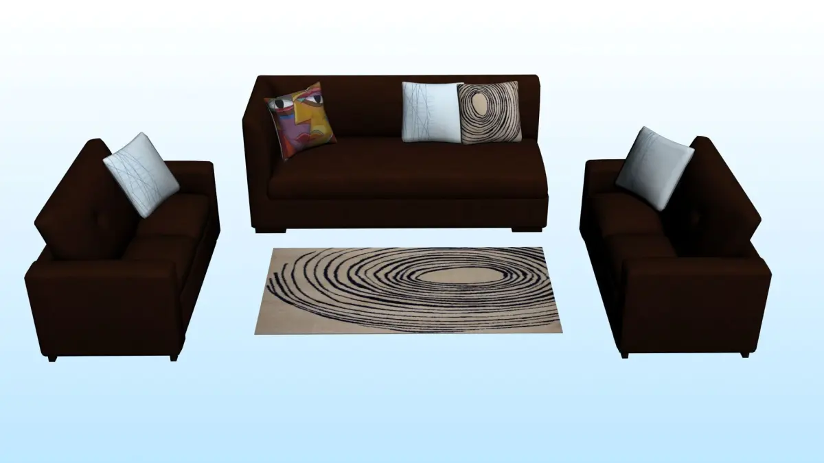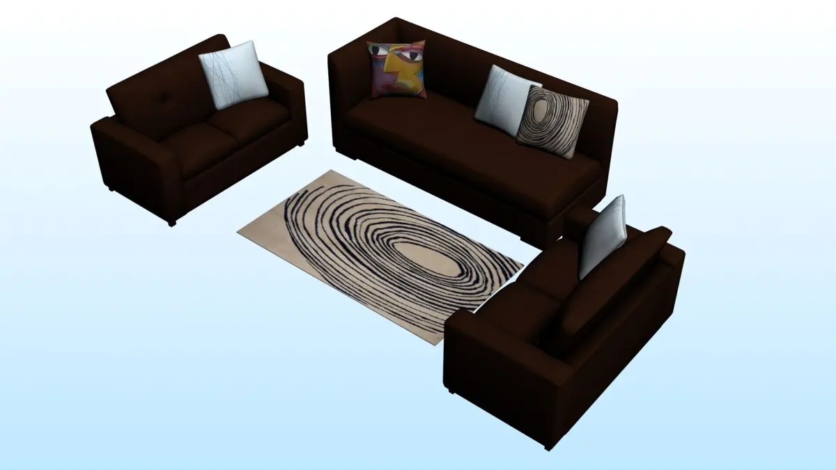 - There is a sitting arrange with 2 double seated sofa, 1 long seated sofa with 5 cushions and a beautiful Rug (3d models) in this package.